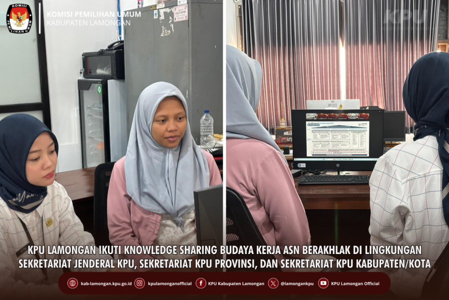 kab-lamongan.kpu.go.id Lamongan-Komisi Pemilihan Umum (KPU) Kabupaten Lamongan mengikuti kegiatan Knowledge Sharing Implementasi Budaya Kerja ASN BerAKHLAK yang diselenggarakan secara daring melalui Zoom Meeting pada Kamis (25/09/2025) mulai pukul 10.00 WIB hingga selesai.