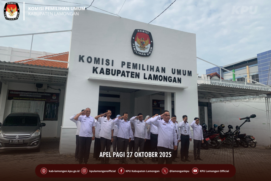 kab-lamongan.kpu.go.id Lamongan-Komisi Pemilihan Umum (KPU) Kabupaten Lamongan melaksanakan apel pagi pada hari ini yang dipimpin oleh Anggota KPU Divisi Teknis, Hafid Hamsah, serta diikuti oleh jajaran Sekretariat dan seluruh staf KPU Lamongan.