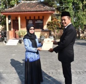 Emi Setiawan membacakan Surat keputusan yang memutuskan PNS berprestasi yaitu Ami Fitriyah