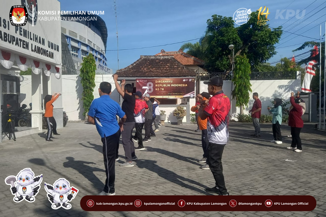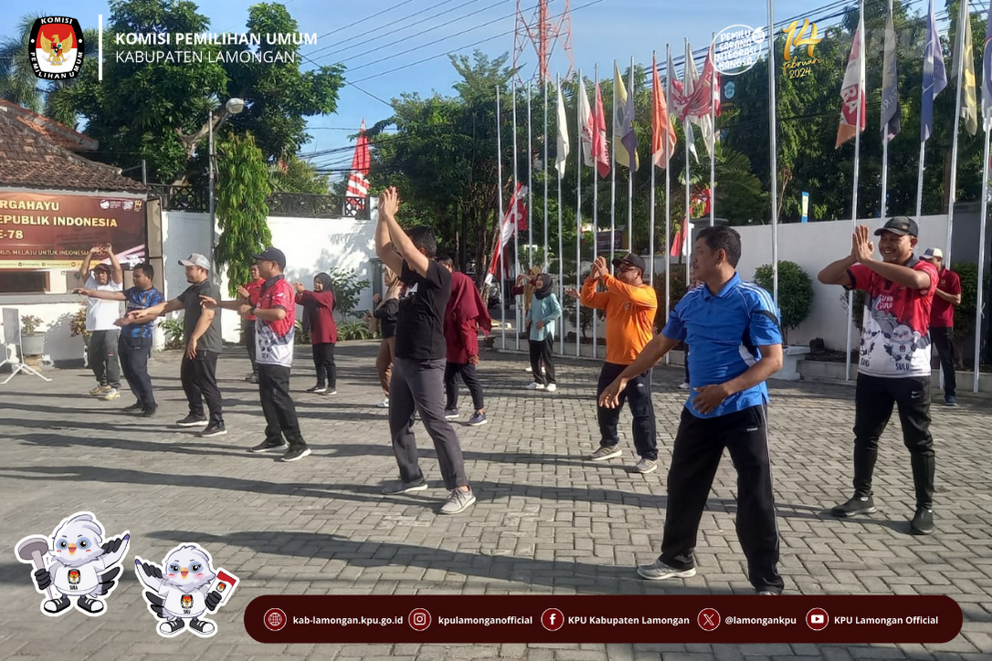 kab-lamongan.kpu.go.id Lamongan- KPU Kabupaten Lamongan gelar senam pagi bersama di Halaman Kantor KPU Kabupaten Lamongan, hari Jum'at (11/08), jam 07.00-07.45 WIB. Diikuti oleh Jajaran Komisioner dan Sekretariat KPU Kabupaten Lamongan.