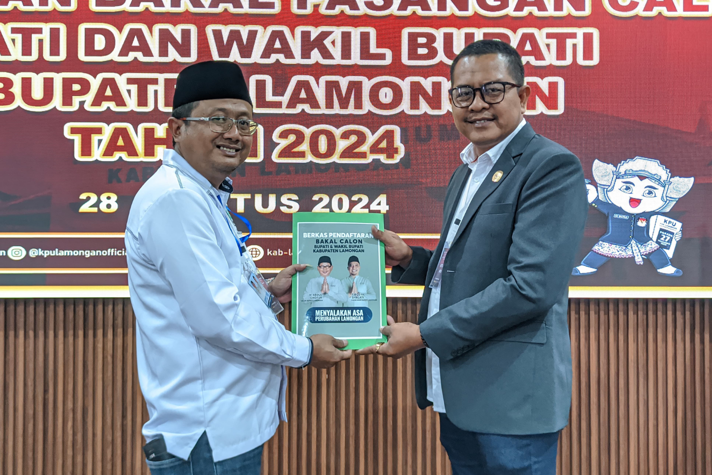 kab-lamongan.kpu.go.id Lamongan-KPU Kabupaten Lamongan menerima Pendaftaran Bakal Pasangan Calon Bupati dan Wakil Bupati Lamongan Tahun 2024, Abdul Ghofur dan Firosya Shalati. Pendafataran dilaksanakan di Kantor KPU Kabupaten Lamongan, Jalan Basuki Rahmat Nomor 207, Rabu, 28 Agustus 2024. KPU Kabupaten Lamongan menerima Gabungan Partai Politik yaitu Partai Kebangkitan Bangsa, Partai Demokrat dan Partai Solidaritas Indonesia mendaftarkan Pasangan Abdul Ghofur dan Firosya Shalati sebagai Bakal Pasangan Calon Bupati dan Wakil Bupati Lamongan Tahun 2024.