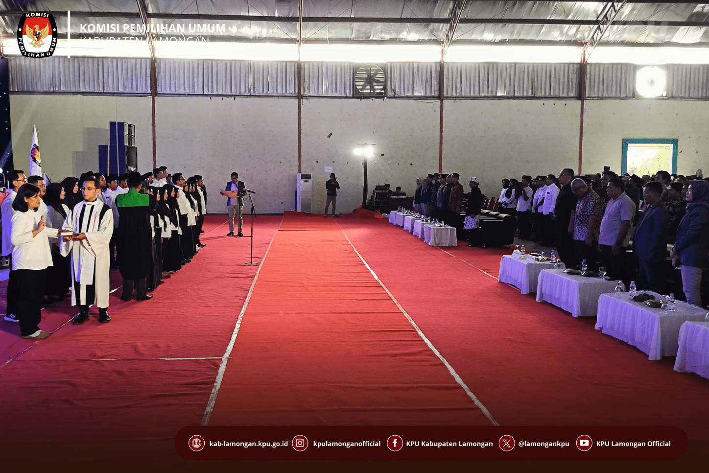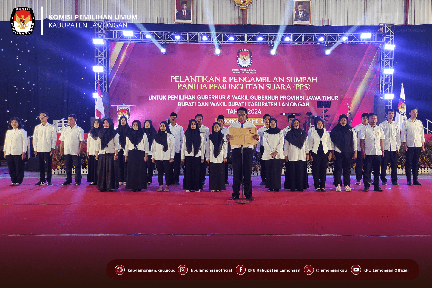 Demi memenuhi kebutuhan Badan Adhoc, pada hari Minggu (26/05/2024), KPU Kabupaten Lamongan telah melantik 1.422 anggota Panitian Pemungutan Suara (PPS) di Gedung Sabudga Kampus Universitas Islam Darul ‘Ulum, Jalan Airlangga Nomor 3, Sukodadi Lamongan.