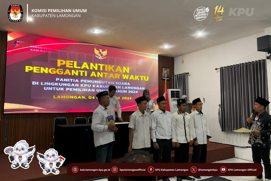 Lamongan (kab-lamongan.kpu.go.id)-Pada hari kamis (04/01/24), KPU Lamongan telah melantik 4 PPS baru untuk mengisi kekosongan jabatan setelah PPS sebelumnya mengundurkan diri. Pelantikan dilaksanakan di Aula KPU pada jam 14.00-15.00 WIB.