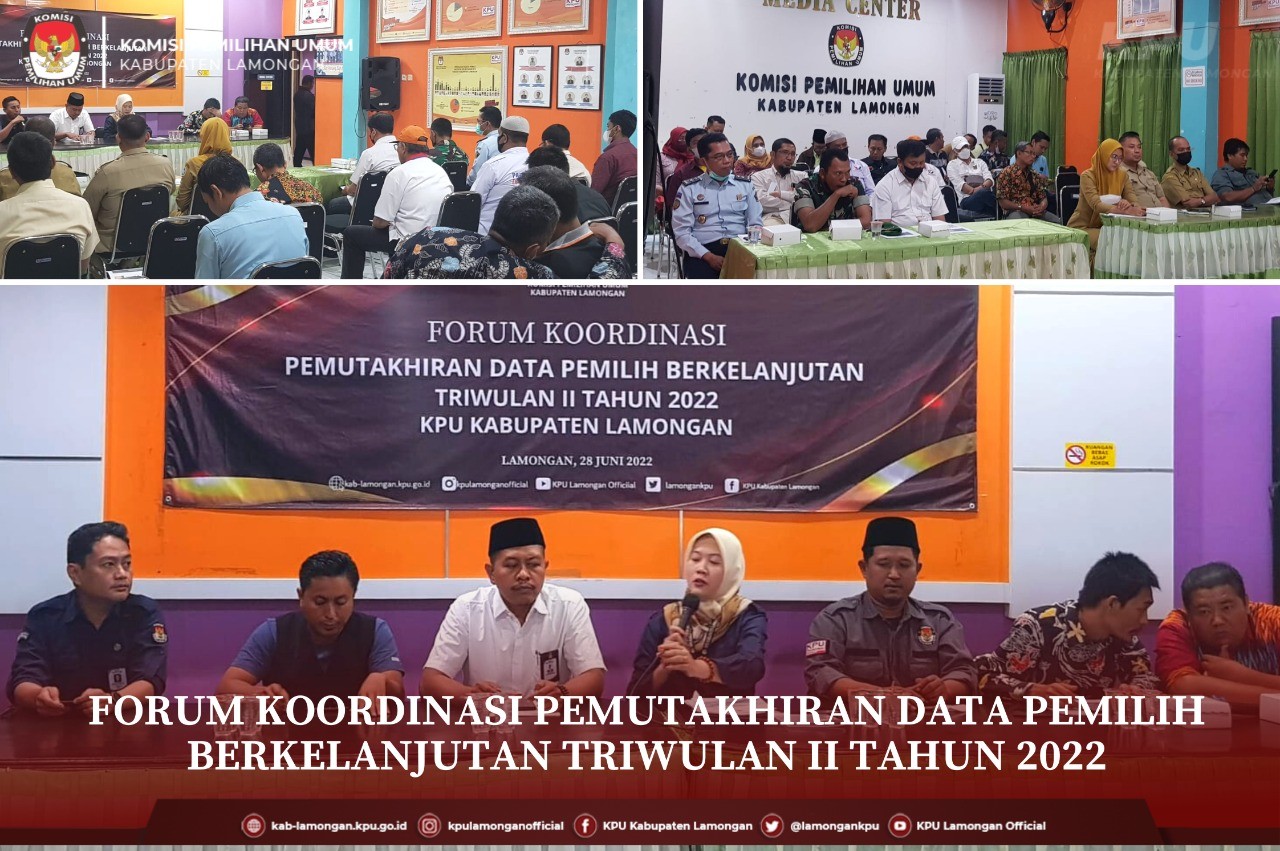 KPU Kabupaten Lamongan, pada hari Selasa (28/06/2022) telah melaksanakan Rekapitulasi Daftar Pemilih Berkelanjutan yang bertempat di Kantor KPU Kabupaten Lamongan beralamatkan Jl. Basuki Rahmad Nomor 207 Lamongan. Rapat Koordinasi Daftar Pemilih Berkelanjutan Triwulan II tahun 2022 di hadiri oleh Polres Lamongan, Kodim 0812 Lamongan, Bawaslu Kabupaten Lamongan, Dinas Kependudukan dan Catatan Sipil, Kabag Pemerintahan, Bakesbangpol, Dinas Komunikasi dan Informasi, Lembaga Pemasyarakatan Kelas IIB Lamongan, dan Partai Politik. Hasil Rekapitulasi Daftar Pemilih Berkelanjutan Triwulan II bulan Juni 2022 tersebut tertuang dalam berita acara Nomor : 20/PL.01.2/3524/2022. Dengan jumlah Pemilih 1.038.134, dengan rincian laki-laki berjumlah 513.644 Pemilih, dan pemilih perempuan berjumlah 524.490 pemilih.