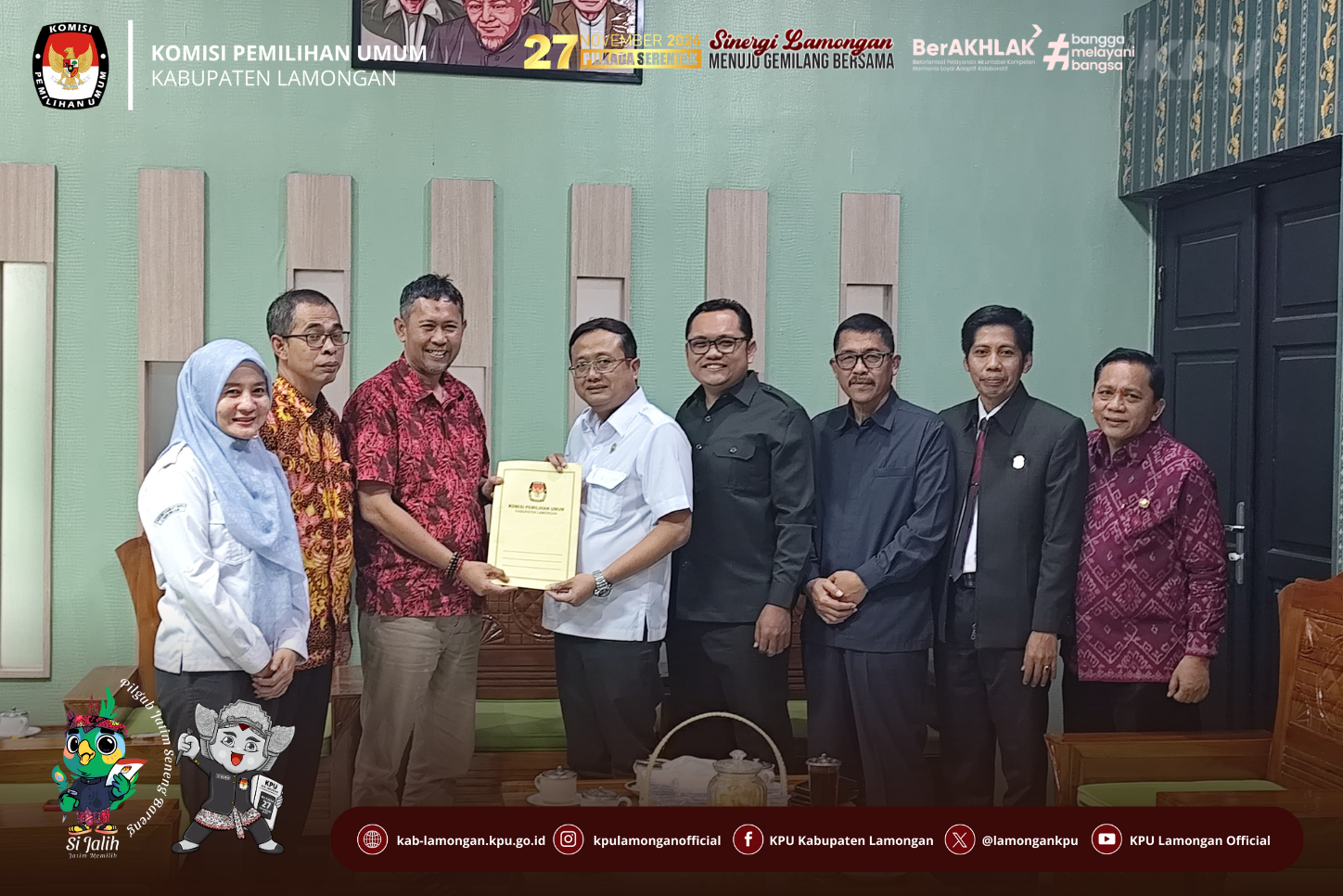 kab-lamongan.kpu.go.id Lamongan-Komisi Pemilihan Umum (KPU) Kabupaten Lamongan secara resmi menyerahkan usulan pasangan calon terpilih Bupati dan Wakil Bupati Lamongan ke DPRD Kabupaten/Kota.
