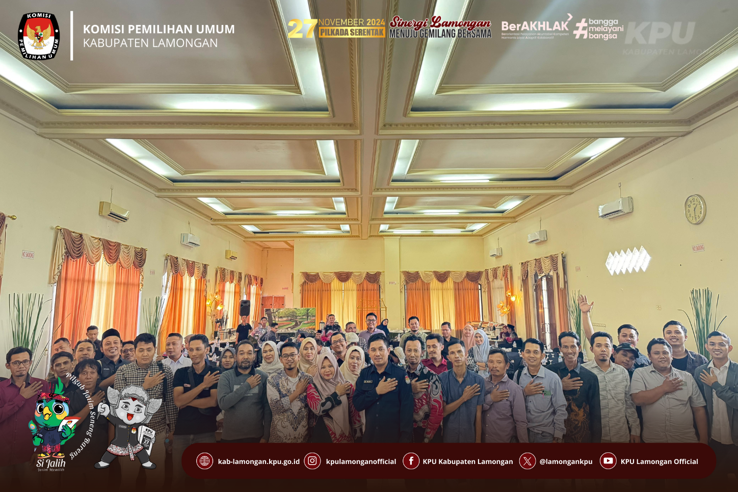 kab-lamongan.kpu.go.id Lamongan-Komisi Pemilihan Umum (KPU) Kabupaten Lamongan menggelar Rapat Evaluasi Pembentukan Badan Adhoc dalam rangka Pemilihan Gubernur dan Wakil Gubernur Jawa Timur serta Bupati dan Wakil Bupati Lamongan Tahun 2024, Selasa (07/01/2025). Acara ini diselenggarakan di Hall Hotel Mahkota, Lamongan, dengan mengundang seluruh Panitia Pemilihan Kecamatan (PPK) se-Kabupaten Lamongan.