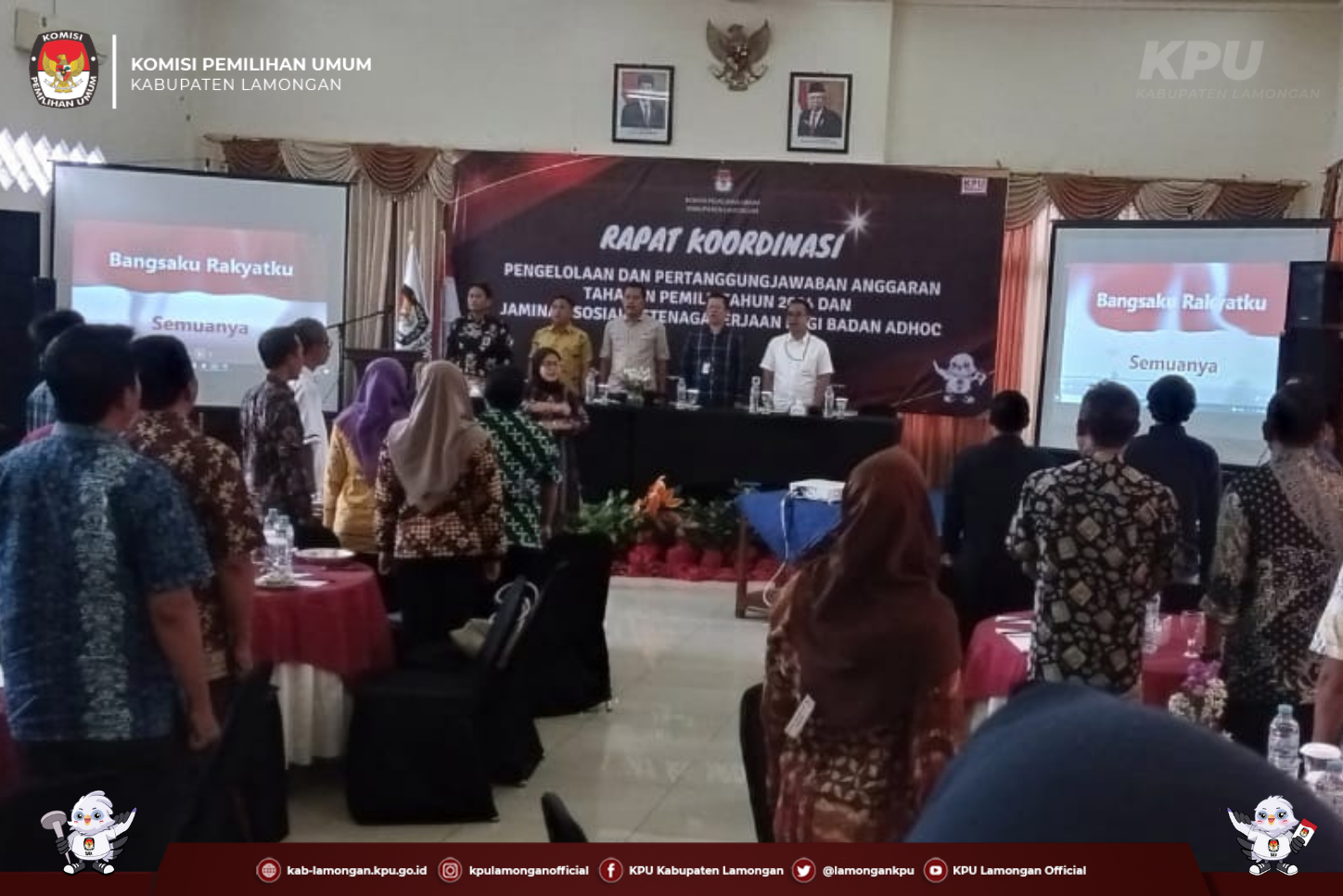 kab-lamongan.kpu.go.id Lamongan-KPU Kabupaten Lamongan menyelenggarakan rapat koordinasi pengelolaan dan pertanggungjawaban anggaran tahapan pemilu tahun 2024 dan jaminan sosial ketenagakerjaan bagi badan adhoc, pada hari jumat (03/03), di Hall Hotel Mahkota. Rakor ini mengundang Ketua dan Sekretaris PPK dengan narasumber yaitu Perwakilan Bank BRI dan BPJS Ketenagakerjaan. Rakor dilaksanakan pada jam 13.00-15.30 WIB.