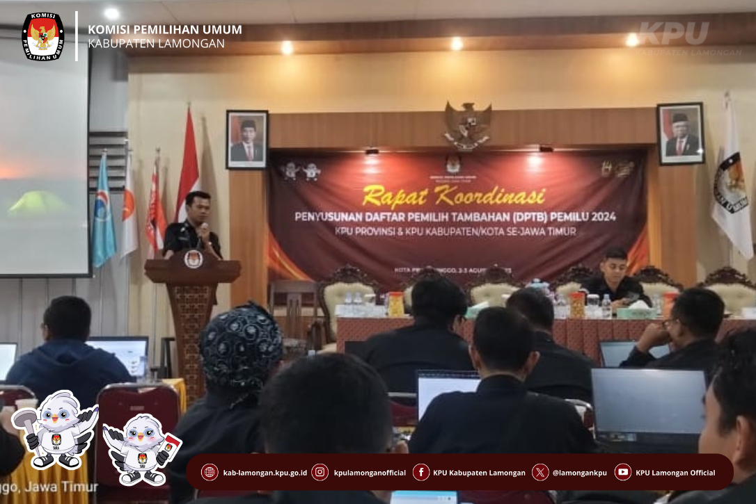 kab-lamongan.kpu.go.id Lamongan- KPU Provinsi Jawa Timur mengadakan Rapat Koordinasi Penyusunan Daftar Pemilih Tambahan (DPTb) Pemilu 2024 KPU Provinsi dan Kabupaten/Kota se-Jawa Timur pada Rabu – Kamis, 2 - 3 Agustus 2023 di KPU Kota Probolinggo.