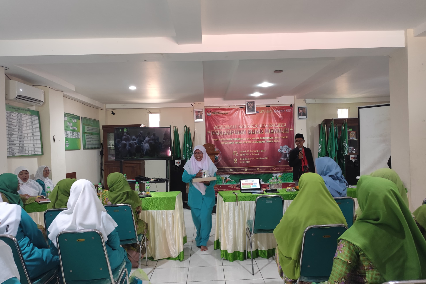 kab-lamongan.kpu.go.id Lamongan-Hari Jum'at (13/09/2024), KPU Kabupaten Lamongan melaksanakan Sosialisasi dan Pendidikan Pemilih bertema Perempuan Bijak Memilih. Sosialisasi ini diadakan di Kantor PC Muslimat NU bersama Ibu-Ibu PC Muslimat NU. Dalam kegiatan ini Hadir Kartika Hidayati, Ketua PC Muslimat NU Lamongan, serta Dewi Mashlahatul Ummah Ketua Santri Demokrasi Lamongan.