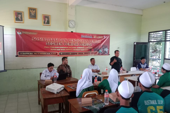 kab-lamongan.kpu.go.id Lamongan-Pada hari Senin, 12 Agustus 2024, Komisi Pemilihan Umum (KPU) Kabupaten Lamongan melaksanakan kegiatan sosialisasi dan pendidikan pemilih di Sekolah Menengah Kejuruan (SMK) Bustanul Ulum Glagah. Acara tersebut bertujuan untuk meningkatkan kesadaran dan pengetahuan siswa mengenai pentingnya partisipasi dalam pemilu, khususnya bagi pemilih pemula.
