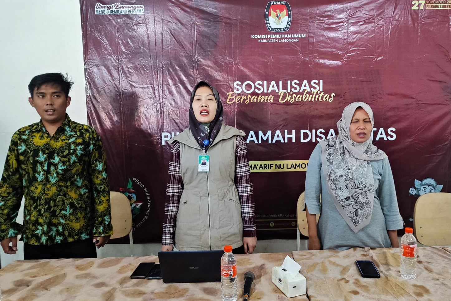 kab-lamongan.kpu.go.id Lamongan- KPU Kabupaten Lamongan melaksanakan sosialisasi bersama disabilitas, pada hari Jumat (30/08/2024), di SLB Ma'arif NU, Dusun Pule, Desa, Sekargeneng, Bakalanpule, Kec. Tikung, Kabupaten Lamongan. Hadir sebagai narasumber Yaitu Dewi Mashlahatul Ummah, Anggota KPU Lamongan periode 2014-2019 dan 2019-2024 serta Arodhi, Kepala Sekolah SLB Maarif NU.