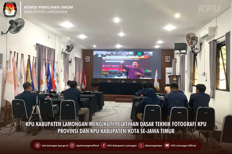 kab-lamongan.kpu.go.id Lamongan-Komisi Pemilihan Umum Kabupaten Lamongan mengikuti Pelatihan Dasar Teknik Fotografi yang diselenggarakan oleh KPU Provinsi Jawa Timur secara Hybrid (15/7/25). KPU Kabupaten Lamongan mengikuti secara daring melalui Zoom Meeting yang dilakukan secara bersama di Aula Ronggo Aboe Amin KPU Kabupaten Lamongan. Hadir di aula, Anggota KPU Kabupaten Lamongan Divisi Sosialisasi Pendidikan Pemilih, Parmas dan SDM A. Thoriq Hidayatullah, Sekretaris KPU Kabupaten Lamongan Muhammad Yasser, Kasubbag Parmas dan SDM Suja’i, beserta seluruh staf Sub Bagian Parmas dan SDM. Pelatihan mengenai Dasar Teknik Fotografi dibuka oleh Ketua KPU Provinsi, Aang Kunafi, dan dihadiri oleh Anggota KPU Provinsi Jawa Timur Divisi Sosdiklih dan Parmas, Nur Salam. Dalam sambutannya Aang mengharapkan dari pelatihan ini pegawai KPU di seluruh Provinsi Jawa Timur dapat menguasai Teknik fotografi supaya mendapatkan foto yang optimal yang bisa menjadi bahan di media sosial, agar masyarakat dapat melihat kegiatan-kegiatan di KPU terutama kegiatan diluar tahapan pemilu. Pelatihan ini mendatangkan narasumber dari kalangan profesional yaitu Robertus Risky Pradianto selaku Fotografer Tujuhpagi.com, Ali Masduki selaku Fotografer Ayojatim.com, pelatihan ini juga menghadirkan narasumber internal yaitu Sektiono yang merupakan Staf Subbagian Parmas KPU Jawa Timur. Peserta mendapatkan berbagai materi mengenai Fotografi seperti Teknik Dasar Fotografi yang membahas mengenai dasar pengaturan cahaya, Teknik Pengambilan Angle Foto guna mendapatkan hasil foto yang optimal, serta mendapatkan pemahaman mengenai standar foto berita yang digunakan di lingkungan KPU, diakhir kegiatan peserta mempraktekan pengetahuan yang sudah didapatkan.