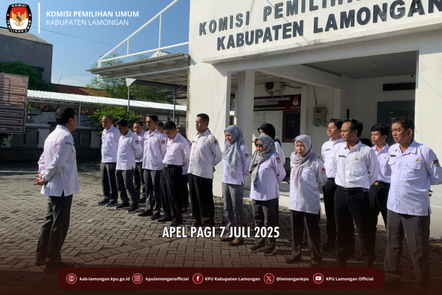 kab-lamongan.kpu.go.id Lamongan-Komisi Pemilihan Umum (KPU) Kabupaten Lamongan menggelar apel pagi pada Senin (7/7/2025) pukul 08.00 WIB di halaman Kantor KPU Kabupaten Lamongan. Apel yang diikuti oleh seluruh jajaran sekretariat dipimpin oleh Sekretaris KPU Kabupaten Lamongan, M. Yasser, selaku Pembina Apel. Dalam amanatnya, M. Yasser mengucapkan terima kasih atas kedisiplinan seluruh pegawai dalam mengikuti apel pagi. Ia menekankan bahwa kedisiplinan merupakan cerminan dari tanggung jawab dan semangat kerja yang harus terus dijaga dalam pelaksanaan tugas sehari-hari. Yasser juga menyampaikan hasil Rapat Koordinasi Kesekretariatan yang dilaksanakan dalam rangka kunjungan kerja Sekretaris Jenderal KPU RI di KPU Kota Malang pada tanggal 4 Juli 2025. Dalam rapat tersebut, ditegaskan bahwa seluruh sekretariat KPU wajib memenuhi permintaan data dan pertanggungjawaban atas pelaksanaan Pemilu dan Pilkada Tahun 2024 secara tertib dan akurat. Selain itu, Yasser menekankan pentingnya proses penyesuaian diri bagi Calon Pegawai Negeri Sipil (CPNS) baru di lingkungan KPU. Ia mengingatkan bahwa CPNS perlu belajar dan memahami pola kerja kelembagaan agar dapat berkontribusi secara maksimal dalam mendukung tugas dan fungsi KPU ke depan.