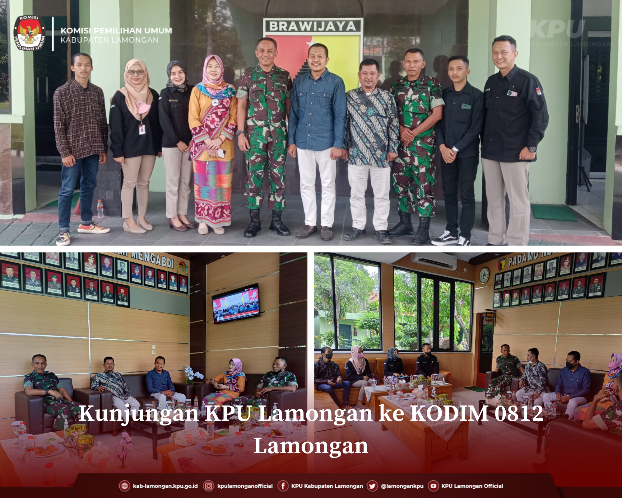 Lamongan,kab-lamongan.kpu.go.id-Rangkaian kunjungan terus dilakukan oleh Pengurus KPU Lamongan. Mahrus Ali selaku Ketua KPU Lamongan, didampingi Divisi Sodiklih, Parmas Dan SDM bersama Divisi Perencanaan data Dan Informasi yaitu Khoirul Anam dan Dewi Maslahatul Ummah serta dari unsur Sekretariat bersilaturrahmi ke Komando Distrik Militer (Kodim) 0812/Lamongan, Rabu (13/07).