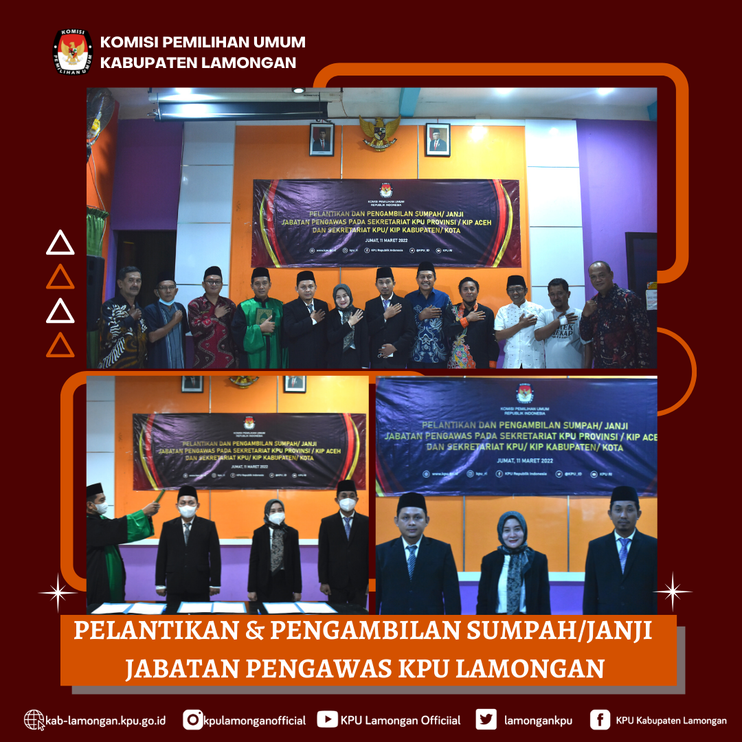 KPU Lamongan mendapat 4 Kasubbag yang mengisi Jabatan pengawas. 3 Kasubbag sebelumnya merupakan pelaksana tugas (PLT), mengisi kekosongan Kasubbag yang Pensiun dan PNS Diperbantukan (DPK) Kembali ke Pemerintah Daerah (Pemda). Iwan Tri Prasetiyo, Kasubbag Keuangan, Umum dan Logistik. Emi Setiawati, Kasubbag Teknis pemilu dan Hubungan Partisipasi Masyarakat. Sujai, Kasubbag Hukum dan Sumber Daya Manusia. KPU Lamongan juga menerima 1 Kasubbag baru yang sebelumnya bertugas di KPU Kabupaten Kediri, yaitu Okie Sidartha yang kini menduduki jabatan sebagai Kasubbag Rencana, Data dan Informasi.