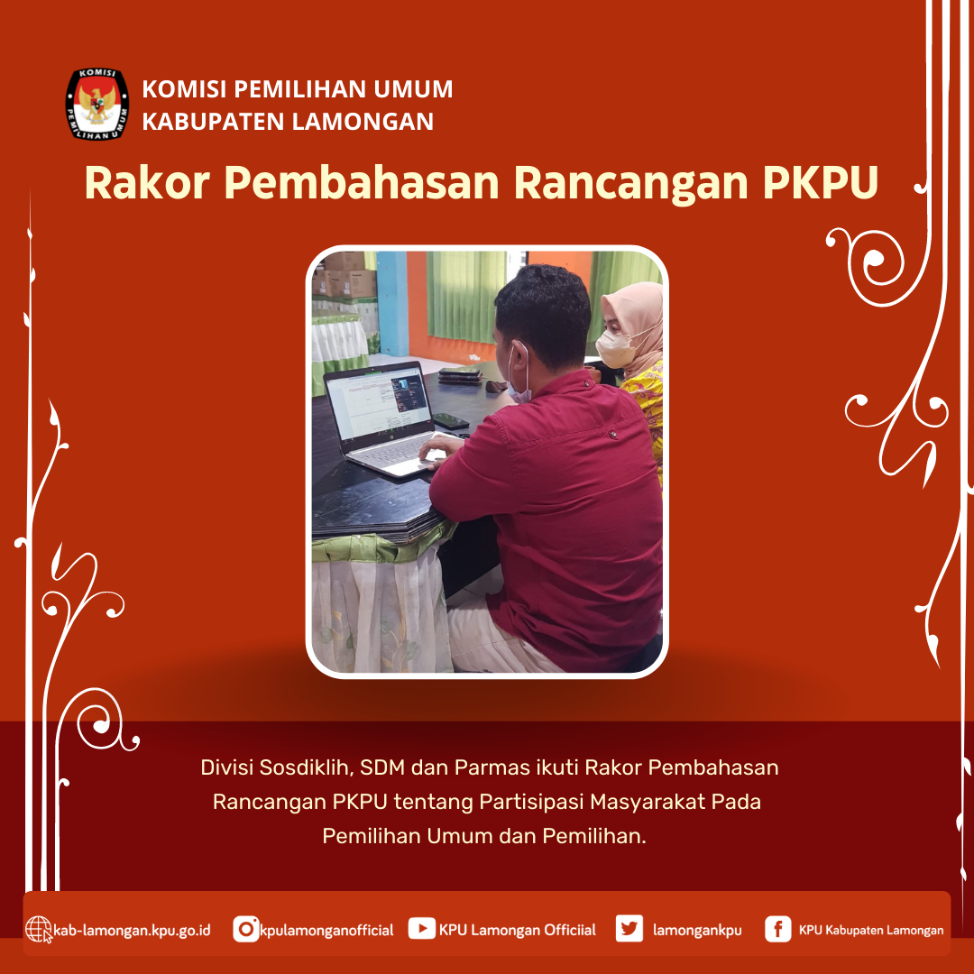 KPU Lamongan mengikuti proses pengambilan sumpah/janji PNS di media center KPU Kabupaten Lamongan. Proses pengambilan Sumpah/Janji diikuti oleh 2 Pegawai pada Rabu,(9/03/2022). Meskipun melalui daring, prosesi berlangsung secara khidmat dengan rohaniawan, Imam Hambali dari Kementerian Agama Kabupaten Lamongan.
