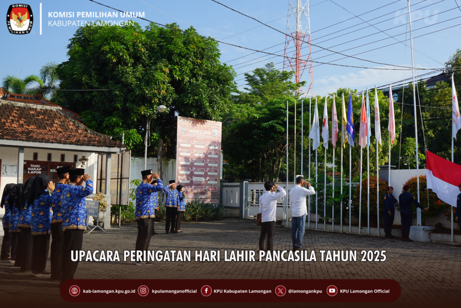 kab-lamongan.kpu.go.id Lamongan-KPU Kabupaten Lamongan menggelar upacara peringatan Hari Lahir Pancasila pada hari Senin (02/06/2025) di halaman kantor KPU. Upacara ini diikuti oleh seluruh jajaran Komisioner, Sekretariat, dan Staf KPU Kabupaten Lamongan. Bertindak sebagai pembina upacara yaitu Erfansyah Syahrir, Anggota KPU Kabupaten Lamongan Divisi Hukum dan Pengawasan. Dengan mengusung tema “Memperkokoh Ideologi Pancasila Menuju Indonesia Raya,” upacara ini menjadi momentum untuk meneguhkan kembali nilai-nilai dasar Pancasila sebagai landasan kehidupan berbangsa dan bernegara. Dalam amanatnya, Erfansyah menegaskan pentingnya menjaga dan mengamalkan nilai-nilai Pancasila dalam setiap aspek tugas dan kehidupan sehari-hari, terutama dalam penyelenggaraan pemilu yang jujur dan berintegritas. Ia juga mengajak seluruh peserta upacara untuk menjadikan Pancasila sebagai pedoman dalam bekerja dan melayani masyarakat. Menurutnya, penguatan ideologi Pancasila sangat relevan dalam menghadapi berbagai tantangan kebangsaan, serta sebagai landasan dalam mewujudkan demokrasi yang bermartabat dan berkeadilan di Indonesia.