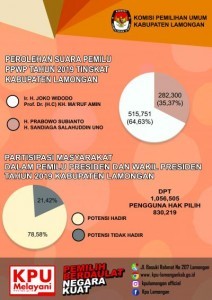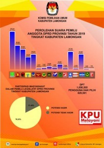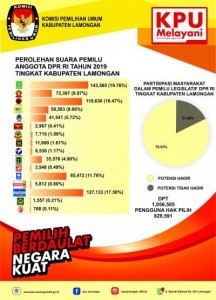Komisi Pemilihan Umum (KPU) Kabupaten Lamongan melaksanakan Rapat Pleno Terbuka Rekapitulasi Hasil Penghitungan Perolehan Suara Pemilu 2019 selama tiga hari, dimulai pada tanggal 01 – 03 Mei 2019 bertempat di Hall grand mahokta hotel jalan sunan drajat no 24 lamongan.