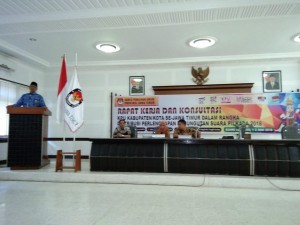 Komisi Pemilihan Umum (KPU) Lamongan mengikuti rapat kerja (raker) dan konsultasi dengan KPU Provinsi Jawa Timur (Jatim) pada Jum’at-Sabtu (1- 2/6/2018) di ruang Joyoboyo Pemkab Kediri. Raker tersebut digelar guna membahas distribusi perlengkapan pemungutan suara pemilihan Pilgub Jatim 2018.