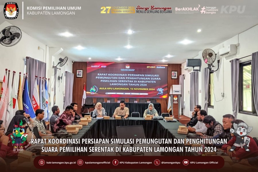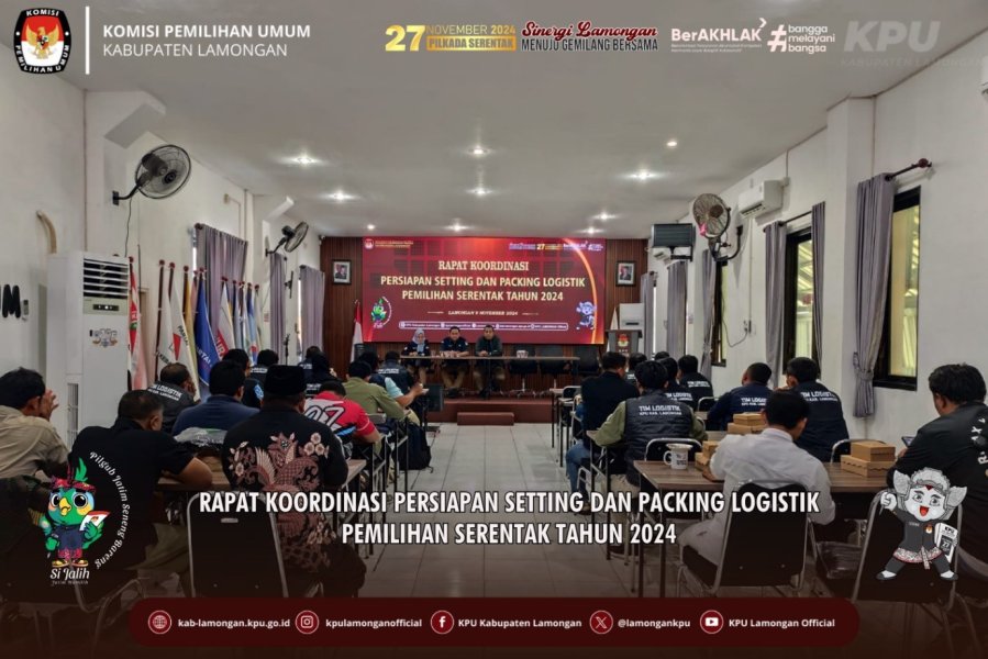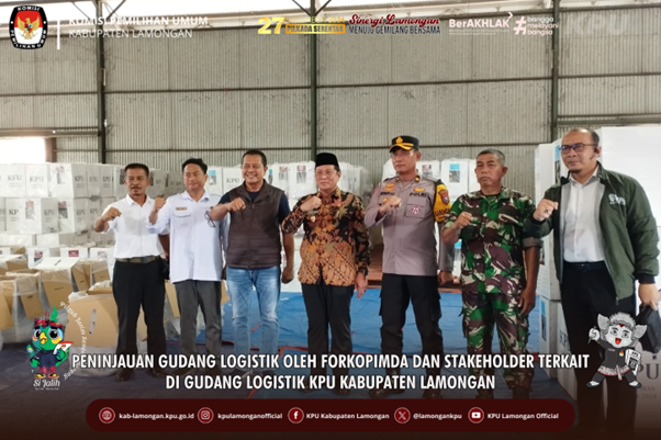 Kab-lamongan.kpu.go.id Lamongan-Kamis, 14 November 2024, Forum Koordinasi Pimpinan Daerah (Forkopimda) Kabupaten Lamongan bersama stakeholder terkait melakukan pengecekan ke gudang logistik Komisi Pemilihan Umum (KPU) Kabupaten Lamongan. Kunjungan tersebut dihadiri oleh Plt. Bupati Lamongan, Abdul Rouf, serta sejumlah perwakilan stakeholder lainnya. Dalam kesempatan itu, Ketua KPU Kabupaten Lamongan, Mahrus Ali, menjelaskan bahwa saat ini KPU sedang berada pada tahap pelipatan dan penghitungan logistik untuk kebutuhan Pilkada Serentak 2024. Kegiatan ini bertujuan memastikan seluruh proses logistik berjalan sesuai jadwal dan memenuhi standar yang telah ditetapkan. Pengecekan tersebut dilakukan untuk memastikan kesiapan logistik pemilu, seperti surat suara, kotak suara, dan perlengkapan lainnya, sehingga tidak ada kendala teknis menjelang hari pemungutan suara. Forkopimda dan stakeholder juga memberikan apresiasi atas upaya KPU dalam menjaga transparansi dan akurasi dalam pengelolaan logistik. Kegiatan ini menunjukkan komitmen bersama antara KPU dan stakeholder untuk menjamin suksesnya penyelenggaraan Pilkada Serentak 2024 di Kabupaten Lamongan.
