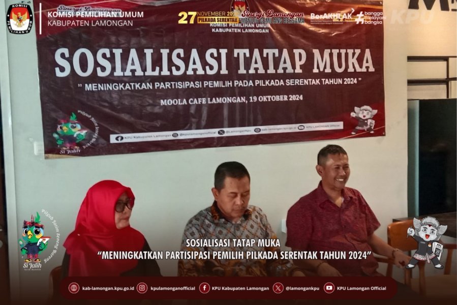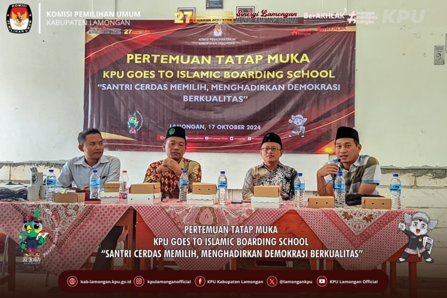 Kab-lamongan.kpu.go.id Lamongan-Kegiatan Sosialisasi Pendidikan Pemilih yang diselenggarakan oleh KPU Kabupaten Lamongan mengangkat tema "Pertemuan Tatap Muka KPU Goes To Islamic Boarding School: Santri Cerdas Memilih, Menghadirkan Demokrasi Berkualitas". Acara dilaksanakan di Ponpes Fathul Hidayah Maduran.