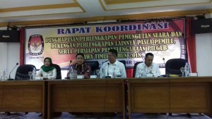 Menghadapi persiapan Pilgub 2018 upaya optimalisasi kesiapan dilakukan oleh KPU Provinsi Jatim dan KPU Kabupaten dan Kota Se-Jatim. Kali ini, persiapan penghapusan perlengkapan pemungutan suara. Rakor Divisi Keungan, Umum dan Logistik ini sebagai upaya pentaan logistik pemilu di Pilkada 2015 dan dukungan perlengkapan lainnya pasca pemilu. Dewi Maslahatul Ummah dan Yosep Dwi Prihatono Sekretaris KPU Kabupaten Lamongan hadir dalam rakor kali ini. Dewi menyampaikan bahwa untuk kebutuhan Pilgub 2018 kotak suara yang dibutuhkan adalah 2481 dan bilik suara sebanyak 4692 disesuaikan dengan kebutuhan TPS sejumlah 2346. Dewi menambahkan bahwa untuk logistik kotak di pemilu 2019 menyesuaikan UU 7 Tahun 2017 tentang kotak suara dalam bentuk transparan, tapi untuk pilgub 2018 masih menggunakan kotak suara yang lama. Yosep membenarkan apa yang disampaikan oleh Dewi selaku divisi Keuangan, Umum dan Logistik. Yosep menambahkan bahwa kegiatan penataan kotak dan bilik suara sudah hampir selesai kemarin sudah tertata 2400. Kegiatan Rakor ini dibuka oleh Ketua KPU Provinsi Jatim Eko Sasmito yang didampingi oleh Divisi KUL Dewinta Hayu Shinta serta Mohammada Eberta Kawima Sekretaris KPU Provinsi Jatim di Aula KPU Jatim yang terletak di Jalan Tenggilis Surabaya ini.
