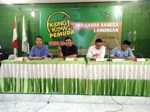 Menindaklanjuti surat permohonan dari garda bangsa Kabupaten Lamongan nomor:022/DKC-01/III/B.1/VIII/2017 tentang permohonan untuk menjadi nara sumber dalam acara Kongkow Kelompok Pemuda dalam dinamika pendidikan politik pemilih pemula. Surat yang ditujukan Kepada Ketua KPU Kabupaten Lamongan mendisposisi divisi SDM dan Parmas untuk mengisi materi diacara kegiatan tersebut ditandatangi oleh Ketua KPU Kabupaten Lamongan Imam Ghozali. Kegiatan tersebut dihadiri oleh berbagai kelompok pemuda dari utusan kecamatan di Kabupaten Lamongan sangat antusias mengikuti kongkow dengan nuansa tanya jawab. Kongkow yang diadakan oleh Garda Bangsa Lamongan ini meminta KPU Kabupaten Lamongan memaparkan tentang dinamika perkembangan data pemilih khususnya tentang pemilih pemula. MH.Fatkhur Rohman yang merupakan divisi SDM dan Parmas memaparkan data matrik daftar pemilih dan data pemitakhiran data pemilih berkelanjutan diiringi dengan data parmas pada pemilu sebelumnya. Kami memenuhi surat permohonan untuk mengisi materi tentang pendidikan politik untuk pemilih pemula, surat dari pengurus garda bangsa lamongan. Segmentasi pemilih seperti kelompok pemilih pemuda seperti ini juga penting untuk kita sosialisasikan tentang pemilu dan penyelenggaraan pemilu. Pendidikan politik untuk kelompok pemuda ini juga bagian dari gerakan.sadar pemilu agar mereka juga terlibat aktif dalam setiap penyelenggaraan pemilu, kedepan juga ada Pilgub 2018 dan Pemilu tahun 2019. Harapan kami, forum diskusi dan kajian tentang pemilu juga penting untuk dilakukan sebagai penguatan transformasi informasi. Kelompok pemuda ini juga harapan.kami kedepan bisa membantu penyelenggara pemilu agar penyelenggaraan pemilu berjalan baik, profesional dan berintegritas. KPU Melayani rakyat untuk menyalurkan aspirasi hak pilihnya. Komitmen itu yang selalu kami jaga dengan baik, pungkas MH.Fatkhur Rohman usai mengisi kegiatan kongkow tersebut.