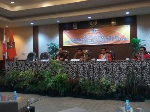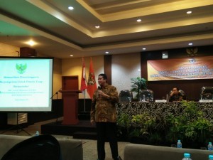 Dewan Kehormatan Penyelenggara Pemilu (DKPP) RI sampaikan materi kewenangan dan kode etik penyelenggara pemilu di rakor bersama Bawaslu dan KPU Provinsi Jatim dengan peserta Panwas dan KPU Kabupaten dan Kota Se Jatim. Sebelum penyampaian materi, Muhammad menceritakan proses pembentukan DKPP dengan gaya khas humorisnya. Pria asal Sulawesi Selatan ini menjelaskan tentang kewenangan DKPP dalam etik penyelenggara pemilu, sangsi pelanggaran tetap tentang integritas dan profesionalitas tidak bisa ditawar dan mencontohkan kasus beberapa KPU Provinsi, Bawaslu, Panwas dan Kabupaten serta Kota yang telah diputus dalam sidang DKPP dan penjelasannya disampaikam dengan gaya khas guyon dan humoris membuat tepuk tangan dari peserta rakor menambah suasana forum begitu menarik dan tampak sangat antusias. Tanya jawab berlangsung dari beberapa peserta rakor diantaranya Purnomo KPU Kota Surabaya yang menjelaskan tentang aspek kepastian hukum, penegakan administrasi dan etika individual yang juga disampaikan oleh Panwas Ahmad Udi Masjkur dari Kabupaten jombang. Anggota DKPP RI ini menjelaskan juga tentang pentingnya pembinaan secara berjenjang dengan serius dan focus. Pembinaan berjenjang dimaksudkan adalah badan adhoc mulai PPK, PPS, PPDP dan KPPS ditingkat koordinasi KPU. Begitupula untuk Panwascam, PPK dan Pengawas TPS digaris koordinasi Panwas Kabupaten dan Kota. Hubungan yang baik antar lembaga sangat diperlukan, bukan untuk saling menjatuhkan, namun saling menguatkan sesuai tupoksinya dan kewenangannya sendiri-sendiri. Ini perlu saya ingatkan jangan sampai antar lembaga yang satu dengan lainnya saling melaporkan ke DKPP tanpa alasan yang benar dan dibenarkan dalam UU. Penyelenggaraan pemilu harus dijaga dengan integritasnya, sikap independen, profesionalitas dan asas jujur dan adil. Jika senyum yang diberikan kepada peserta pemilu A lebarnya senyum tersebut adalah 100 centimeter, maka senyum kepada peserta pemilu B juga harus 100 centi meter termasuk perlakuan yg sama. Jangan engkau bermain-main senyum kepada peserta pemilu dengan perlakuan yang tidak sama, DKKP akan menjadi malaikat penjabut nyawa itu jadinya. Tapi jangan hawatir, jika engkau benar, maka DKPP akan menjadi malaikat pemberi nyawa jadinya itu, kira-kira begitu, diiringi tawa dan gelegar canda khasnya. Seluruh peserta rakor lagi-lagi memberikan uploase tepuk tangan dengan meriahnya.