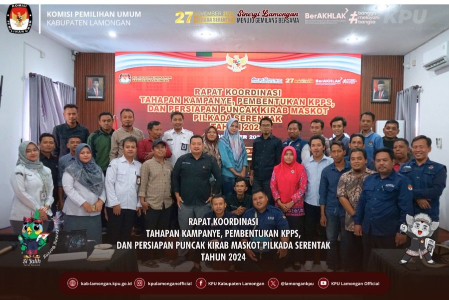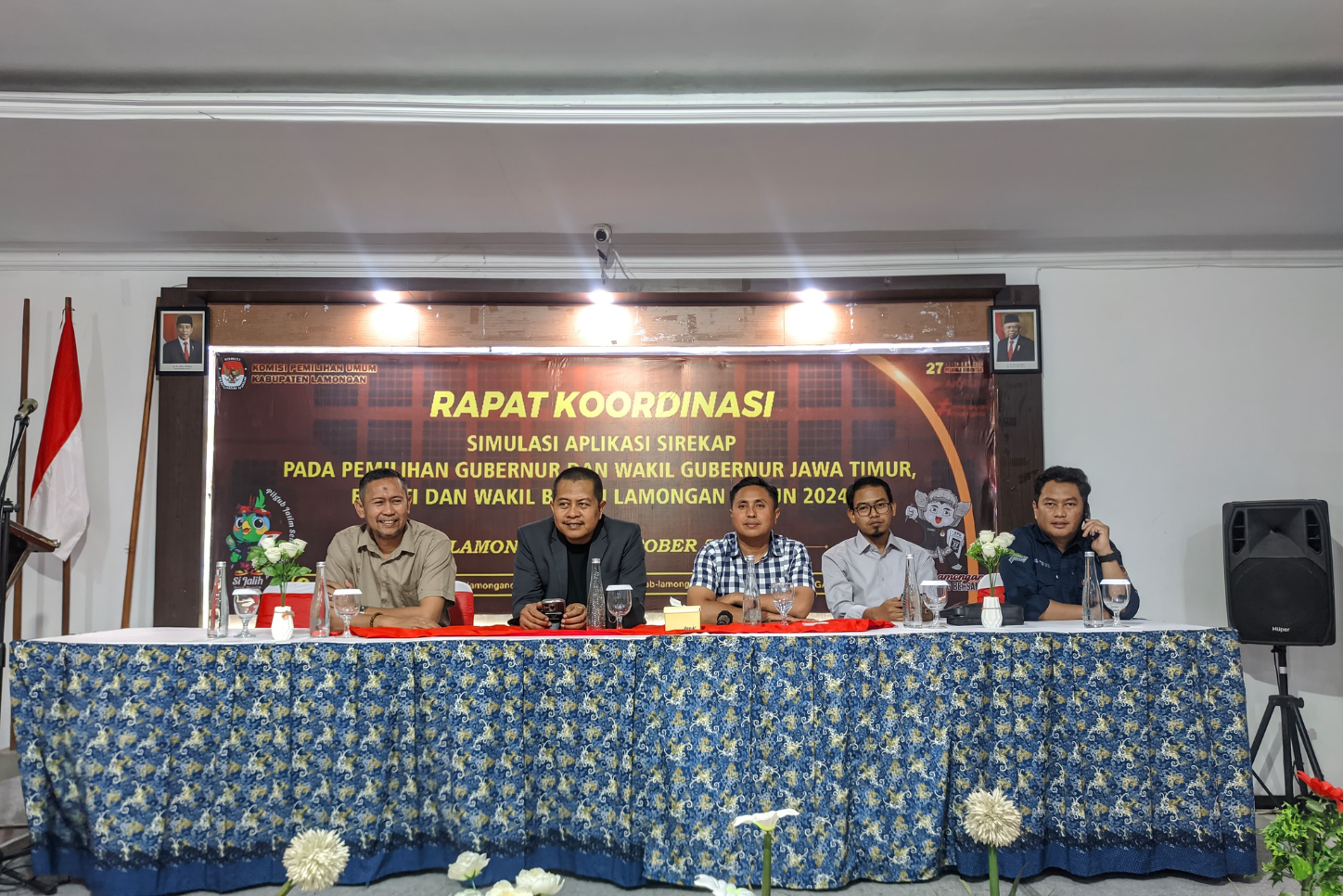 kab-lamongan.kpu.go.id Lamongan-KPU Kabupaten Lamongan menyelenggarakan Rapat Koordinasi Persiapan Kegiatan Simulasi Pemungutan dan Penghitungan Suara Pilkada Serentak Tahun 2024, di Aula Kantor, Jumat (11/10/2024). Rapat ini mengundang Ketua dan Divisi Teknis Penyelenggaraan. Rapat dilaksanakan pada jam 13.00-17.00 WIB. Hafid Hamsah, Divisi Teknis Penyelenggaraan, menyampaikan bahwa kegiatan Rapat Koordinasi ini bertujuan untuk menginventarisir kendala-kendala yang terjadi saat Pemungutan Dan Penghitungan Suara saat Pemilu dan Pilkada sebelumnya. Hal ini diharapkan menjadi bekal atau bahan evaluasi untuk mempersiapkan Kegiatan Simulasi Pemungutan dan Penghitungan Suara. Kendala yang disoroti mengenai kendala proses Pemungutan dan Penghitungan Suara pada aspek Teknis dan Logistik sejak dari Pemungutan Suara, Penghitungan Suara di tingkat TPS, Kecamatan hingga Kabupaten. Mahrus Ali, Ketua KPU Lamongan menyampaikan bahwa Rapat Koordinasi Persiapan Kegiatan Simulasi Pemungutan dan Penghitungan Suara Pilkada Serentak Tahun 2024 merupakan bagian dari upaya KPU (Komisi Pemilihan Umum) untuk memastikan kesiapan teknis pelaksanaan Pilkada.