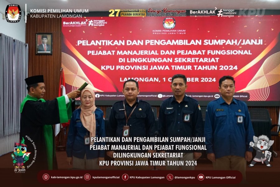 Pejabat Manajerial yang dilantik di KPU Kabupaten Lamongan adalah M. Yasser, Sekretaris; Iwan Tri Prasetiyo, Kasubbag Keuangan, Umum dan Logistik; Suja’i, Kasubbag SDM dan Parmas; Emi Setiawati, Kasubbag Teknis dan Hukum serta Okie Sidharta, Kasubbag Perencanaan, Data dan Informasi yang mengikuti Pelantikan Daring di Jakarta dikarenakan sedang ada Rapat Koordinasi di Jakarta.