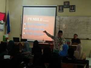 Sosialisasi kepada masyarakat dan pemilih pemula terus digencarkan KPU Kabupaten Lamongan. Kali ini dikalangan siswa SMKN 1 Lamongan yang mayoritas siswanya adalah kaum perempuan. Sekolahan yang memiliki 11 jurusan ini sangat antusias dengan kegiatan sosialisasi yang berbasis pada pemilih pemula.Kegiatan ini diapresiasi dengan baik oleh seluruh jajaran dewan guru dan siswa, utamanya oleh siswa kelas XII yang merupakan sudah berumur 17 tahun dan sudah memiliki surat keterangan identitas kependudukan. Kegiatan yang diselenggaran di ruang kelas ini sangat memberikan makna tersendiri bagi yang mengikutinya. Bagaimana tidak, kegiatan ini adalah baru mereka ikuti dan membuat siswa sangat senang. Fiza yang merupakan siswa jurusan Akomodasi Perhotelan menyampaikan bahwa kegiatan ini bagus, kami mendapatkan ilmu dan informasi tentang penyelenggaraan pemilu. Menurut saya, makna pemilu adalah bagaimana kita menentukan pilihan kita untuk sama-sama membangun Indonesia kedepannya agar lebih baik. Pemilu adalah ajang demokrasi yang jujur, agar pemimpin yang terpilih juga jujur, tuturnya. Berbeda menurut Fida, Pemilu adalah mengajarkan kita untuk memilih, tidak golput. Pemilu itu kan juga memberikan pengalaman yang berharga untuk kita sendiri. Kan hanya Lima Tahun sekali, kan sayang jika nantinya tidak ikut memilih. Berbeda lagi menurut Novita salah satu siswa jurusan Pemasaran, menurut Novita bahwa kita memiliki hak yang sama untuk dipilih dan memilih. Pemilu berarti menyalurkan aspirasi kita kepada calon pemimpin kita. Jadi, kita harus nyoblos nantinya, tidak boleh golput. Sosialisasi pemilu ke pemilih pemula di SMKN 1 Lamongan ini disambut langsung oleh Kepala Sekolah Tri yang didampingi oleh Sunandar selaku Humas dan Kesiswaan. Tri, menyambut baik kegiatan ini karena merupakan informasi penting bagi siswa dan kami. Ini juga kan bagian khazanah keilmuan tentang pemilu, apalagi juga kan sebentar lagi akan ada Pilgub, tuturnya. MH.Fatkhur Rohman yang merupakan pemateri menyampaikan bahwa, kegiatan sosialisasi ke pemilih pemula ini terus digalakkan walaupun berbasis non anggaran. Ini kewajiban kami selaku KPU Kabupaten Lamongan, kegiatan seperti ini sudah kami jadwalkan kesekolah-sekolah dibawah naungan Kemenag dan Diknas hingga bulan Desember kedepan, tutur anggota KPU Kabupaten Lamongan Divisi SDM dan Parmas yang didampingi oleh Dewi Maslahatul Ummah divisi Perencanaan, Logistik dan Keuangan serta Awinoto Kasubbag Teknis dan Hupmas. Kegiatan ini diapresiasi positif oleh siswa dengan mengutarakan pendapatnya tentang makna pemilu. Bahwa pemilu itu adalah ajang demokrasi yang harus kita junjung tinggi dengan nilai langsung, umum, bebas, rahasia, jujur dan adil./ftr