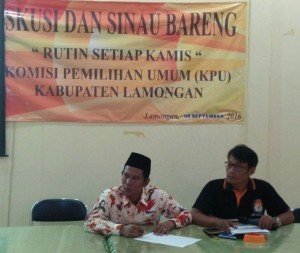 Mahasiswa Universitas Islam Lamongan (Unisla) telah usai melakukan tugas KKN (Kuliah Kerja Nyata) di Kantor KPU Kabupaten Lamongan beberapa waktu yang lalu. Namun, nuansa keakraban dan kekeluargaan masih terus terasa. Terbukti dengan adanya pemberian cindera mata dari mahasiswa ini yaitu Dinda Elok Agustin dan Zahrotul Mufida. Pemberian cindera mata ini diterima langsung oleh Komisioner KPU Kabupaten Lamongan MH. Fatkhur Rohman selaku Divisi SDM dan Parmas yang di dampingi oleh Kasubbag Teknis Awinoto serta Kasubbag Hukum, Nikmah. Selama kami Praktek KKN disini, kami sangat senang. Nuansa kekeluargaan sangat kental disini. Canda, tawa serta perhatian kepada kami berdua disini sangat terasa. Bimbinganpun selalu kami rasakan setiap hari. Kami betah disini, sayang waktunya hanya sebulan”, tutur Dinda Elok Agustin. Kegiatan penerimaan cindera mata ini dilaksanakan diruangan aula media center KPU Kabupaten Lamongan. “Kami sangat bangga bisa membantu serta membimbing mahasiswa yang praktek langsung di Kantor KPU Kabupaten Lamongan dalam kegiatan KKN (Kuliah Kerja Nyata). Ya, harapan kami selama mereka magang disini semua keilmuan tentang manajemen administrasi bisa dipraktekkan dalam kegiatan sehari-hari dan.dalam dunia pekerjaan mereka”, tutur MH. Fatkhur Rohman disela-sela aktivitasnya saat melakukan pengontrolan untuk perbaikan laman e-PPID KPU Kabupaten Lamongan./ftr