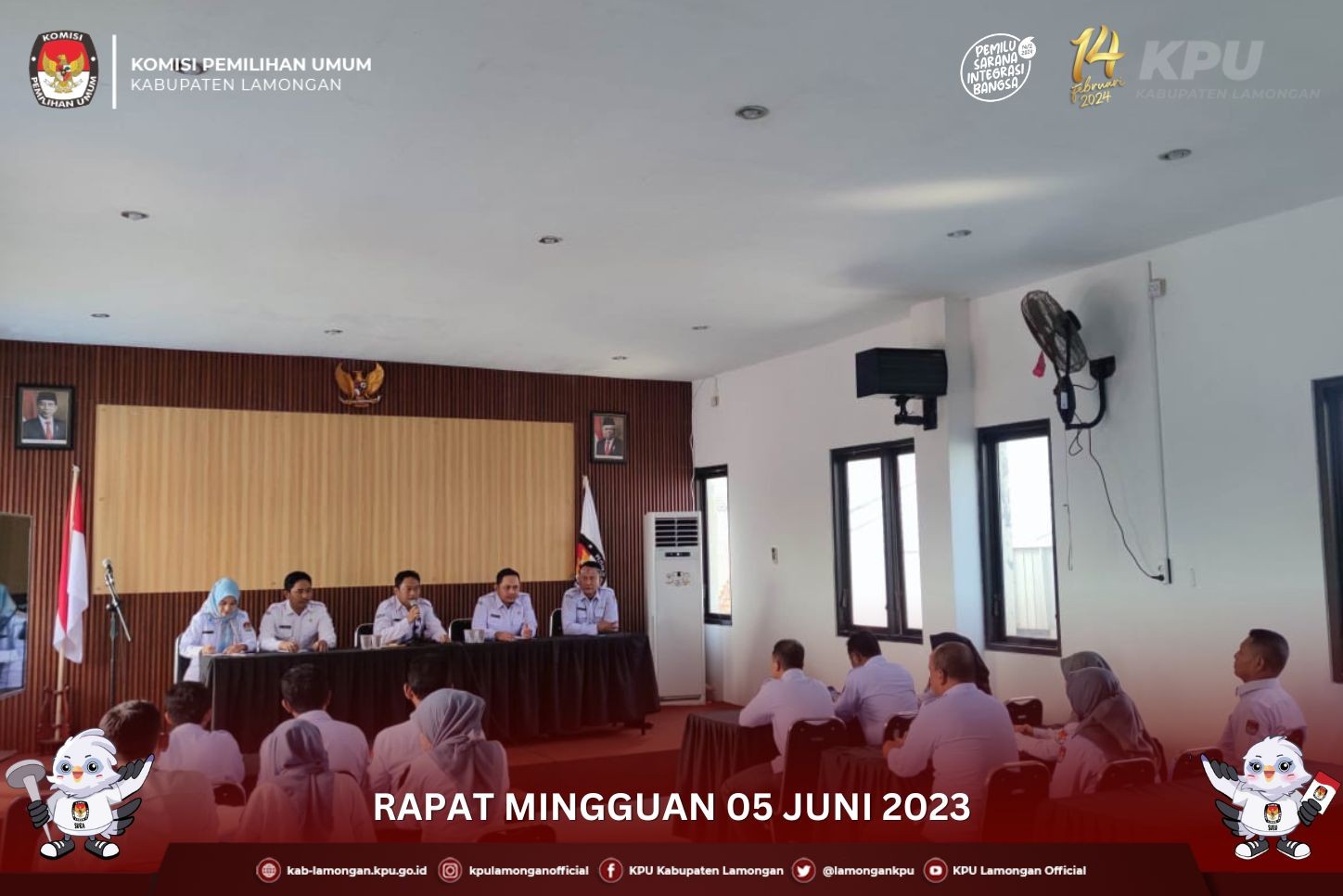 kab-lamongan.kpu.go.id Lamongan, KPU Kabupaten Lamongan laksanakan rapat rutin pada hari senin (05/06) selepas melaksanakan kegiatan apel. Rapat yang dilaksanakan di aula KPU Kabupaten Lamongan, pada jam 09.00-10.30 wib ini menjelaskan mengenai evaluasi kerja tiap sub bagian selama seminggu sebelumnya dan rencana kerja di minggu ini.