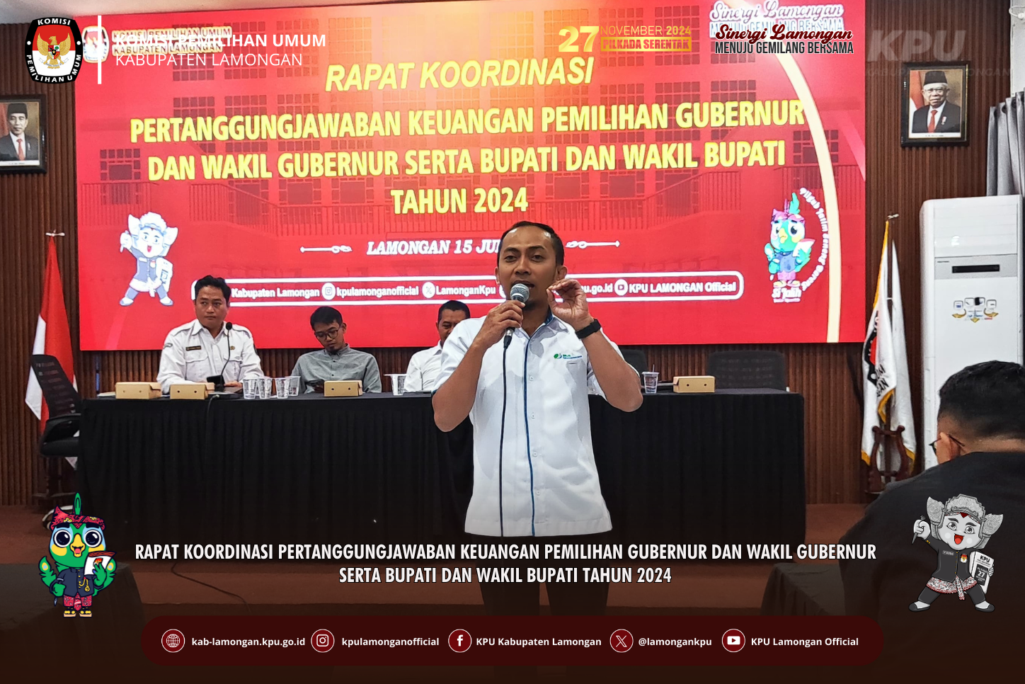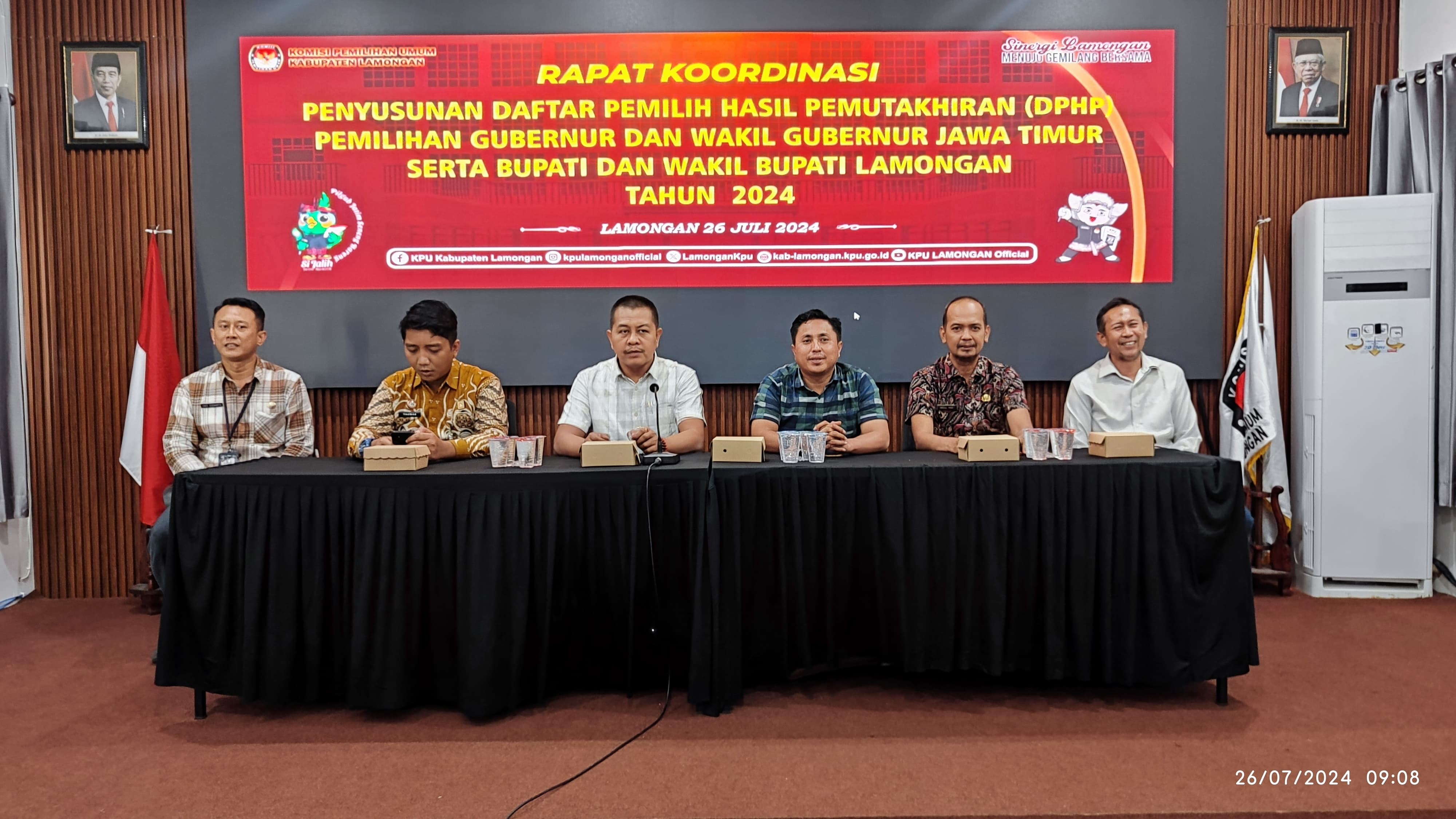 kab-lamongan.kpu.go.id Lamongan-KPU Kabupaten Lamongan menggelar Rapat Koordinasi Penyampaian Dokumen Persyaratan Usulan Pengangkatan Calon Terpilih Anggota Dewan Perwakilan Rakyat Daerah Kabupaten Lamongan Tahun 2024, di Hotel Grand Mahkota, Lamongan. Rapat Koordinasi dilaksanakan pada jam 13.00, hari jumat (26/07/2024). Dalam kesempatan tersebut, Mahrus Ali, Ketua KPU Lamongan, menegaskan bahwa tahapan dari KPU mulai dari Pencalonan hingga Penetapan telah selesai. KPU juga sudah menyerahkan seluruh data Calon Anggota Dewan kepada Sekretariat Dewan dan Kepala Bagian Tata Pemerintahan sebagai syarat dalam Pelantikan Calon. Saat ini, menurut keterangan Sekretariat Dewan dan Kepala Bagian Tata Pemerintahan Pemda Lamongan yang telah berkoordinasi dengan Pemprov Jatim, ternyata dalam persyaratan Pelantikan Anggota DPRD Kabupaten Lamongan 2024 dibutuhkan Surat Kesehatan yang baru. Surat Kesehatan memang idealnya menunjukkan kondisi Kesehatan seseorang dan berlaku selama 3 bulan sedangkan Surat Sehat yang dipegang oleh KPU adalah Surat Sehat di tahun 2023 yang dipergunakan sebagai persyaratan Pencalonan. Hafid Hamsah, Divisi Teknis Penyelenggaraan, menyampaikan bahwa rakor ini merupakan bentuk inisiatif KPU dalam memfasilitasi agar proses Pelantikan dapat berjalan dengan lancar. Dalam rakor hadir perwakilan Sekretariat Dewan sebagai pembicara dan Perwakilan RS. Soegiri sebagai fasilitator tes Kesehatan yang akan dilakukan oleh Calon Anggota Dewan.