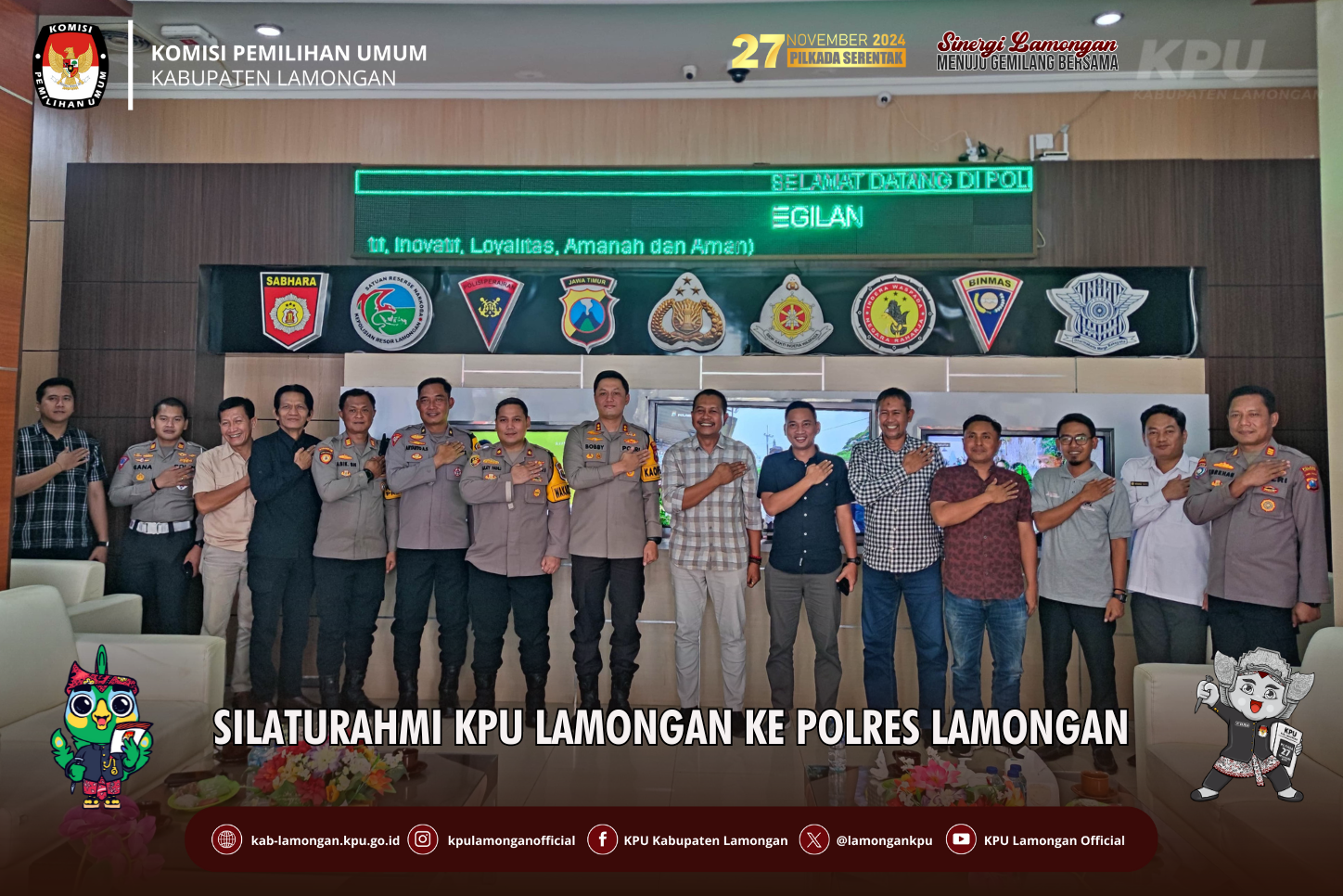 kab-lamongan.kpu.go.id Lamongan-Selepas kegiatan Sosialisasi yang digelar di mahkota, KPU Lamongan bersilaturahmi ke Polres Lamongan, pada siang hari, kamis (11/07/2024). Kunjungan ke Polres ini diterima dengan baik oleh Kapolres Lamongan, yaitu AKBP Bobby A. Condroputra, beserta Jajaran Pimpinan Polres Lamongan. Kunjungan ini terkait perkenalan Ketua dan Anggota KPU Lamongan periode 2024-2029 sekaligus membangun sinergitas menuju Pemilihan Kepala Daerah Serentak yang akan digelar 27 November 2024 nanti. Dalam silaturahmi ini, Mahrus Ali, Ketua KPU Lamongan, hadir bersama Anggota dan Sekretaris KPU Lamongan. "Tujuan Silaturahmi ini memperkenalkan Ketua dan Anggota KPU Lamongan yang dilantik tanggal 12 Juni bulan lalu," jelas Mahrus Ali, Ketua KPU Lamongan yang juga menjabat sebagai Ketua di Periode 2019-2024. Mahrus Ali memperkenalkan Anggota KPU Kabupaten Lamongan beserta Divisinya masing-masing. Tidak hanya memperkenalkan diri, Mahrus Ali juga berterima kasih atas peran Polres Lamongan sejak Tahapan Pemilu 2024 hingga dalam pengamanan saat kegiatan Peluncuran Pilkada Lamongan 11 Juni Lalu. Mahrus juga menjelaskan kegiatan dan rencana kegiatan KPU dalam Tahapan Pemilihan Kepala Daerah yang dilaksanakan 27 November 2024 nanti. "Dalam jangka dekat ini sekitar bulan depan akan digelar Kirab Pilkada Se-Jawa Timur," jelas Mahrus. Tentunya pihaknya berharap Polres dapat membantu suksesnya penyelenggaraan Kirab tersebut. AKBP Bobby A. Condroputra, menyampaikan bahwa pihaknya siap bertugas untuk membersamai KPU dalam pelaksanaan Tahapan Pilkada kedepannya. KPU dan Polres berharap komunikasi yang terjalin akan memperkuat sinergitas satu sama lain demi suksesnya Penyelenggaraan Pilkada Serentak 2024 di Lamongan ini.