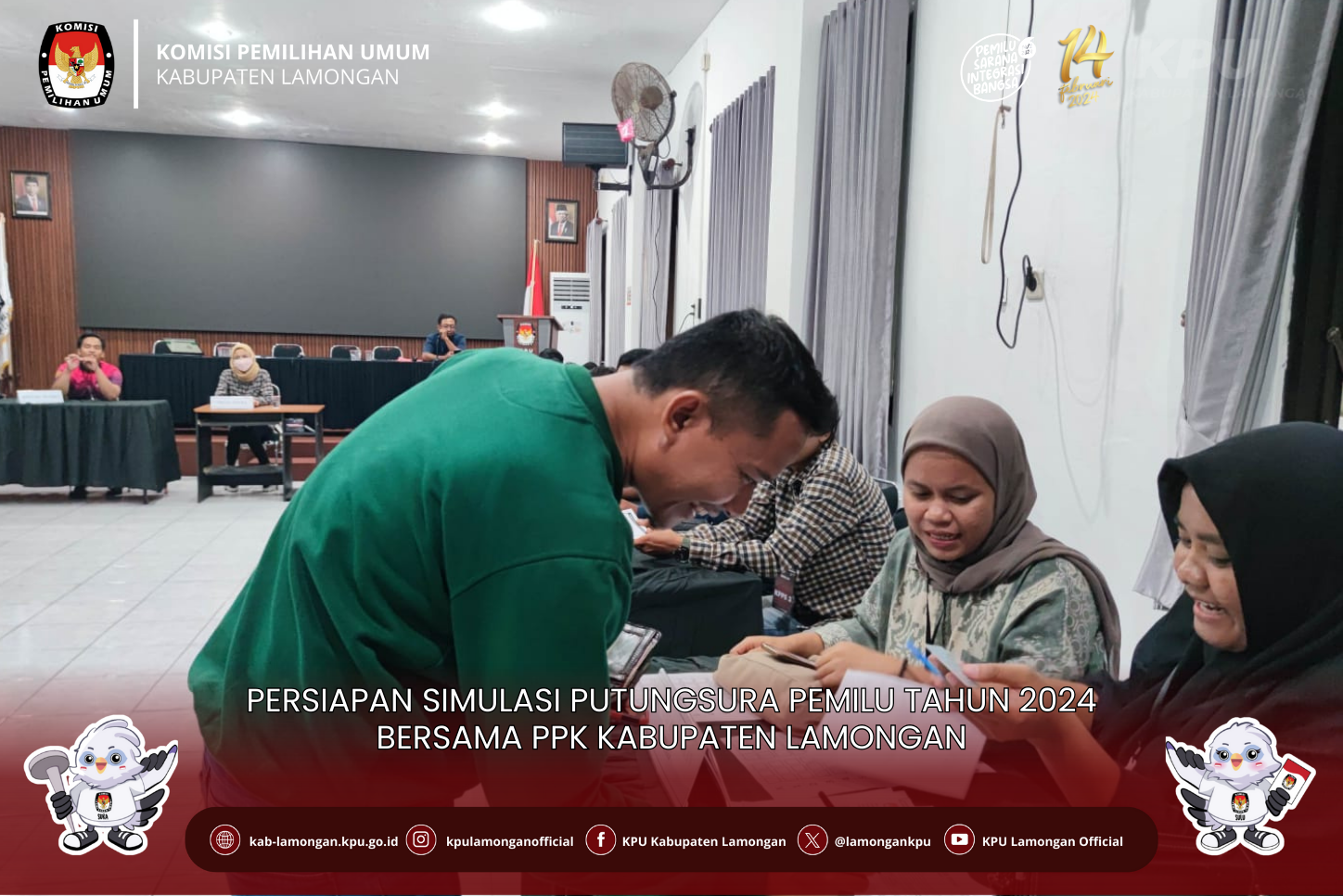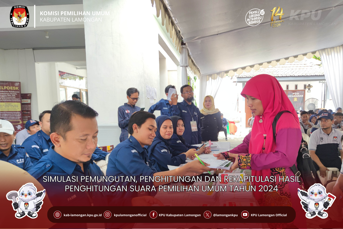 Lamongan (kab-lamongan.kpu.go.id) -Selasa (27/12/2023), KPU Lamongan menggelar Simulasi Pemungutan, Penghitungan dan Rekapitulasi Hasil Penghitungan Suara Pemilihan Umum Tahun 2024, di halaman Kantor KPU, pada jam 07.00-14.00 WIB. Simulasi menghadirkan Stakeholder terkait, Ketua dan Divisi Teknis PPK, Ketua PPS dan masyarakat umum sekitar kantor KPU.