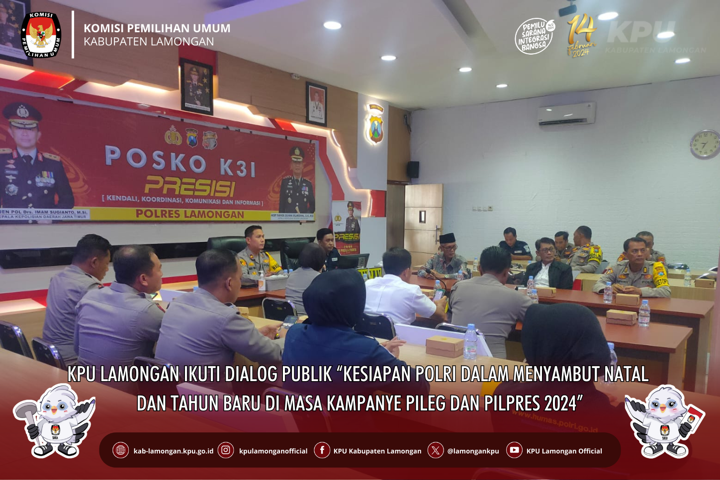 kab-lamongan.kpu.go.id Lamongan- KPU Kabupaten Lamongan hadir sebagai salah satu undangan dalam acara Dialog Publik dengan tema “Kesiapan Polri Dalam Menyambut Natal dan Tahun Baru di Masa Kampanye Pileg dan Pilpres 2024”, yang di gelar oleh Div Humas Polri secara Nasional melalui aplikasi zoom, pada hari Rabu (29/11/23). Siswanto, Anggota KPU Lamongan, Divisi Hukum, hadir menyaksikan zoom bersama Polres Lamongan di Ruangan K3I, Polres Lamongan, pada jam 08.00-12.00 WIB. Hadir dalam kegiatan, Akay Fahli, Wakapolres Lamongan juga turut menyaksikan Zoom meeting tersebut.