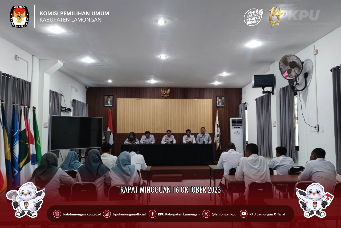 kab-lamongan.kpu.go.id Lamongan-KPU Kabupaten Lamongan menyelenggarakan Rapat Rutin Mingguan, Senin (16/10), jam 08.30, di Aula Ronggo Aboe Amin.