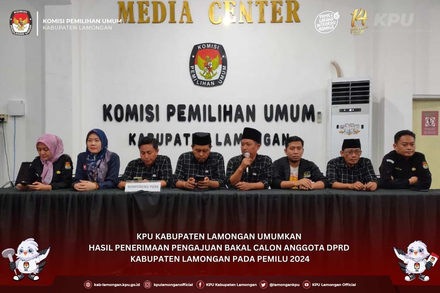 kab-lamongan.kpu.go.id Lamongan, KPU Kabupaten Lamongan telah melaksanakan Penerimaa Pengajuan Bakal Calon Anggota pada 1-14 Mei 2023 hingga pukul 23.59 WIB. Pada hari Senin (15/05), jam 00.00 WIB, KPU Kabupaten Lamongan mengumumkan hasil penerimaan pengajuan Bakal Calon Anggota DPRD Kabupaten Lamongan Pada Pemilu 2024 melalui Siaran Langsung (Live Streaming) yang dilakukan melalui kanal Youtube KPU Lamongan Official. Pada kesempatan ini, Achmad Shohib, Divisi Teknis Penyelenggaraan, memaparkan penerimaan yang telah berlangsung. "KPU Kabupaten Lamongan membuka penerimaan pengajuan mulai hari senin-minggu tanggal 1-14 Mei 2023,"jelasnya. Shohib menambahkan pada tanggal 1-13 Mei 2023 penerimaan dibuka pada jam 08.00 WIB sampai 16.00 WIB dan pada tanggal 14 Mei dibuka pada jam 08.00 WIB hingga 23.59 WIB. KPU Kabupaten Lamongan menerima 17 partai politik tingkat Kabupaten Lamongan pada Pengajuan Bakal Calon Anggota DPRD Kabupaten Lamongan. Untuk rincian hasil penerimaan disampaikan oleh Achmad Shohib dan disaksikan oleh Ketua; Mahrus Ali, Anggota Dewi Mashlahatul Ummah, Khoirul Anam, Siswanto, hadir juga pihak Bawaslu Kabupaten Lamongan, Achmad Zudi. Didampingi oleh Sekretaris; M. Yasser dan Kasubbag Teknis Penyelenggaraan, Partisipasi, dan Hubungan Masyarakat Emi Setiawati. KPU Kabupaten Lamongan juga melakukan hitung mundur batas penerimaan pengajuan dengan seluruh sekretariat yang bertugas melakukan penerimaan.