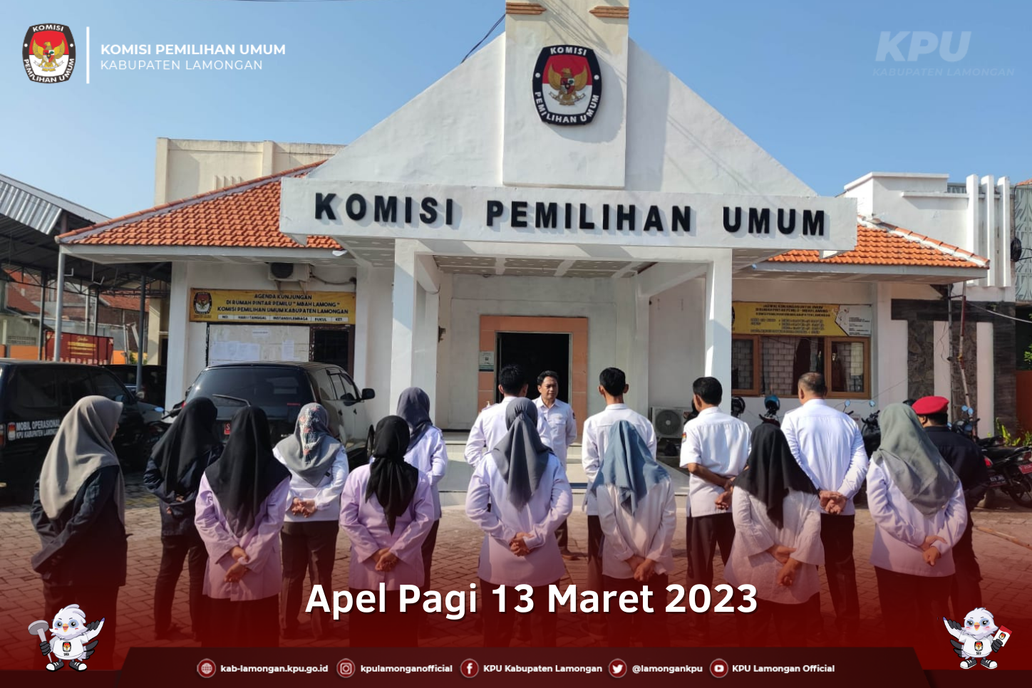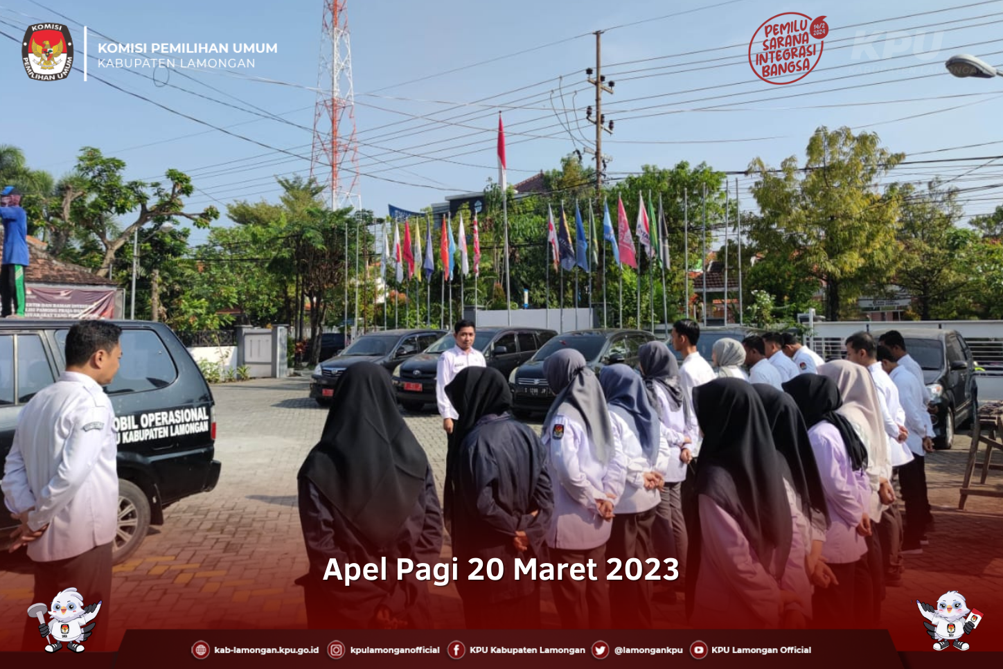 kab-lamongan.kpu.go.id Lamongan-Suja'i, Kasubbag Hukum dan SDM bertugas mejadi Pembina apel, pada hari rabu (20/03), pada jam 07.30 WIB. Suja'i menerangkan bahwa pelaksanaan apel pagi merupakan kewajiban bagi setiap pegawai, selain untuk mendengar arahan pimpinan, apel pagi juga bermanfaat untuk melatih kedisiplinan dan tanggung jawab bagi setiap pegawai dilingkungan KPU kabupaten Lamongan. Dalam pengarahannya Suja'i menyampaikan terima kasih kepada seluruh pegawai perihal kinerja dan tugas yang telah dilaksanakan dalam bulan ini. Suja'i mengingatkan kembali bahwa pelaksanaan apel pagi merupakan kewajiban bagi setiap pegawai, selain untuk mendengar arahan pimpinan, apel pagi juga bermanfaat untuk melatih kedisiplinan dan tanggung jawab bagi setiap pegawai dilingkungan KPU Kabupaten Lamongan. Minggu ini adalah minggu pertama menyongsong Bulan Ramadhan. Pihaknya berharap di bulan ramadhan ini KPU Kabupaten Lamongan tetap dalam ritme bekerja yang konsisten karena masih adanya proses tahapan yang berjalan di bulan Ramadhan, yaitu Verifikasi Dukungan Bakal Calon DPD, tahapan Verifikasi Administrasi Perbaikan kedua dan Pemutakhiran Data Pemilih pasca dilakukannya coklit. Dalam penutupan apel, Suja'i berdoa agar proses tahapan selalu diberikan kelancaran oleh Allah yang Maha Esa.