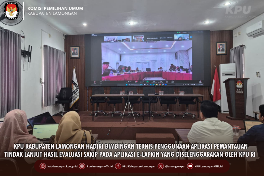 kab-lamongan.kpu.go.id Lamongan-KPU Kabupaten Lamongan Selasa (16/9/2025) mengikuti kegiatan Bimbingan Teknis Penggunaan Aplikasi Pemantauan Tindak Lanjut Hasil Evaluasi SAKIP pada Aplikasi E-Lapkin yang diselenggarakan oleh KPU RI secara daring melalui Zoom Meeting. Kegiatan dihadiri oleh Sekretaris KPU Kab. Lamongan, Muhammad Yasser beserta para staf. Acara diawali dengan pembukaan resmi oleh Inspektur Wilayah I KPU RI, Wahyu Yudi Wijayanti. Dalam arahannya, beliau menegaskan bahwa evaluasi SAKIP memiliki peran penting sebagai instrumen untuk menilai penerapan, memberikan apresiasi, sekaligus memastikan efektivitas serta efisiensi pemanfaatan sumber daya. Evaluasi ini juga mendorong setiap satuan kerja agar lebih bertanggung jawab atas kinerjanya, memperoleh masukan dalam pengelolaan, serta mendukung pimpinan dalam mengambil keputusan berbasis data kinerja. Proses evaluasi tersebut kini difasilitasi melalui aplikasi E-Lapkin, sehingga mekanisme penilaian dapat berjalan lebih sistematis, transparan, dan mudah diakses oleh seluruh satuan kerja. Kehadiran aplikasi ini merupakan tindak lanjut dari hasil evaluasi SAKIP tahun 2025, yang merekomendasikan agar KPU menyediakan instrumen sekaligus standar pengukuran kinerja yang dapat diterapkan di tingkat pusat hingga kabupaten/kota. Selanjutnya, kegiatan diisi dengan penyampaian materi mengenai penggunaan aplikasi pemantauan tindak lanjut hasil evaluasi SAKIP melalui E-Lapkin oleh narasumber dari Divisi Pusat Data dan Informasi KPU RI.