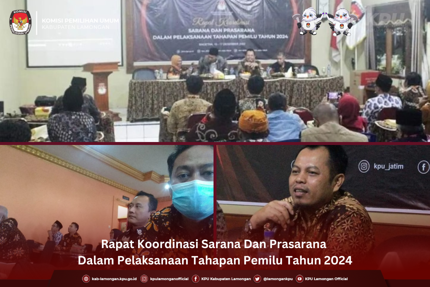 kab-lamongan.kpu.go.id Magetan-KPU Kabupaten Lamongan hadir sebagai peserta dalam Rapat Koordinasi Sarana Dan Prasarana Dalam Pelaksanaan Tahapan Pemilu Tahun 2024, bertempat di Kantor KPU Kabupaten Magetan, Jalan Karya Dharma 70, Magetan, Pada Kamis-Sabtu (15-17/12). Hadir Mahrus Ali, Ketua; M Yasser, Sekretaris dan Okie Sidharta, Kasubbag Perencanaan, Data dan Informasi KPU Kabupaten Lamongan.