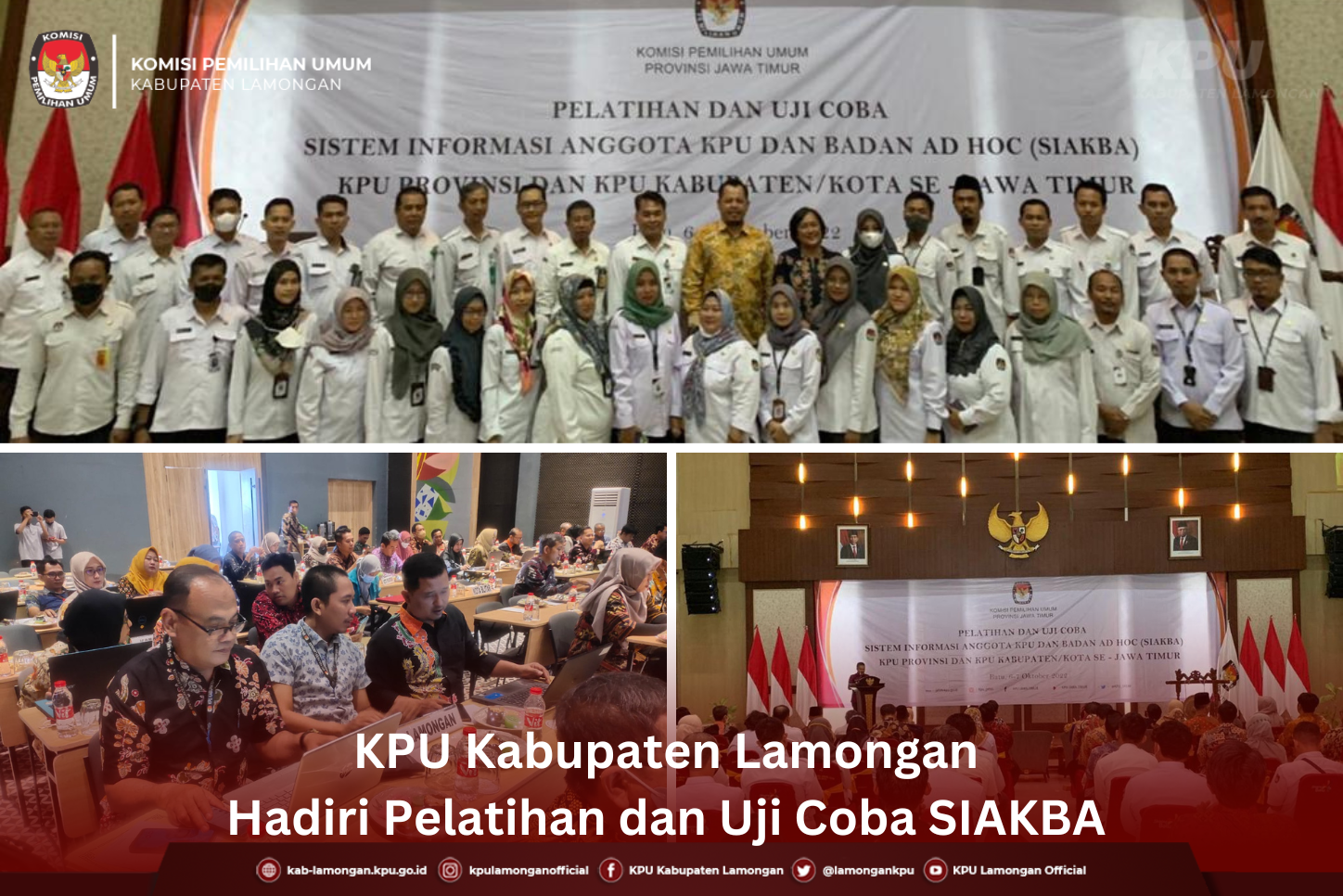 kab-lamongan.kpu.go.id,Batu-KPU Kabupaten Lamongan Ikuti Pelatihan dan Uji Coba Sistem Informasi Anggota KPU dan Badan Ad Hoc (SIAKBA) bersama KPU Kabupaten/Kota Se-Jawa Timur yang berlangsung pada Kamis hingga Jumat (6-7/10/2022). Pelatihan SIAKBA bertempat di Graha Pancasila Balai Among Tani, Kota Batu, Malang. Hadir sebagai peserta dari KPU Kabupaten Lamongan, Khoirul Anam, Divisi SDM, Suja'i, Kasubbag Hukum dan SDM dan Suwito, Operator SIAKBA. SIAKBA ini diharapkan dapat menjadi sistem aplikasi yang memudahkan pengelolaan data Badan Adhoc. Pada Sambutannya, Ketua KPU Jawa Timur, Choirul Anam, menyampaikan Aplikasi Siakba diharapkan dapat membuat Calon pendaftar Badan Adhoc dapat mengisi pendaftaran secara mandiri. Kepala Bagian (Kabag) Hukum dan Sumber Daya Manusia (SDM) Rizki Indah Susanti menyebutkan bahwa dasar dari kegiatan ini adalah Surat Ketua KPU Jatim Nomor 2268/TIK.03-Und/35/2022 dan Daftar Isian Pelaksanaan Anggaran (DIPA) KPU Jatim Nomor 076.01.2.654425/2022 tanggal 17 November 2021.