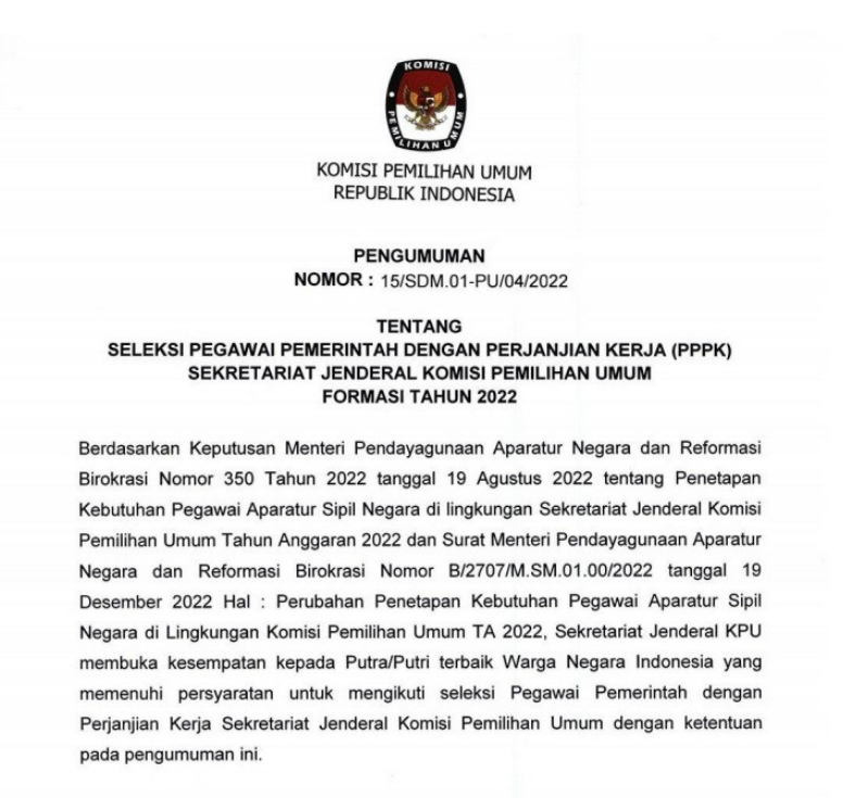 Berdasarkan Keputusan Komisi Pemilihan Umum Nomor 534 Tahun 2022 tentang Perubahan atas Keputusan Komisi Pemilihan Umum 476 Tahun 2022 tentang Pedoman Teknis Pembentukan Badan Adhoc Penyelenggara Pemilihan Umum dan Pemilihan Gubernur dan Wakil Gubernur Bupati dan Wakil Bupati dan Walikota dan Wakil Walikota, menyampaikan bahwa perpanjangan pendaftaran dilakukan dalam hal sampai dengan masa pendaftaran berakhir tidak ada peserta yang mendaftar atau kurang dari 2 (dua) kali jumlah PPS yang dibutuhkan, membuka 1 (satu) kali perpanjangan waktu pendaftaran selama 3 (tiga) Hari.